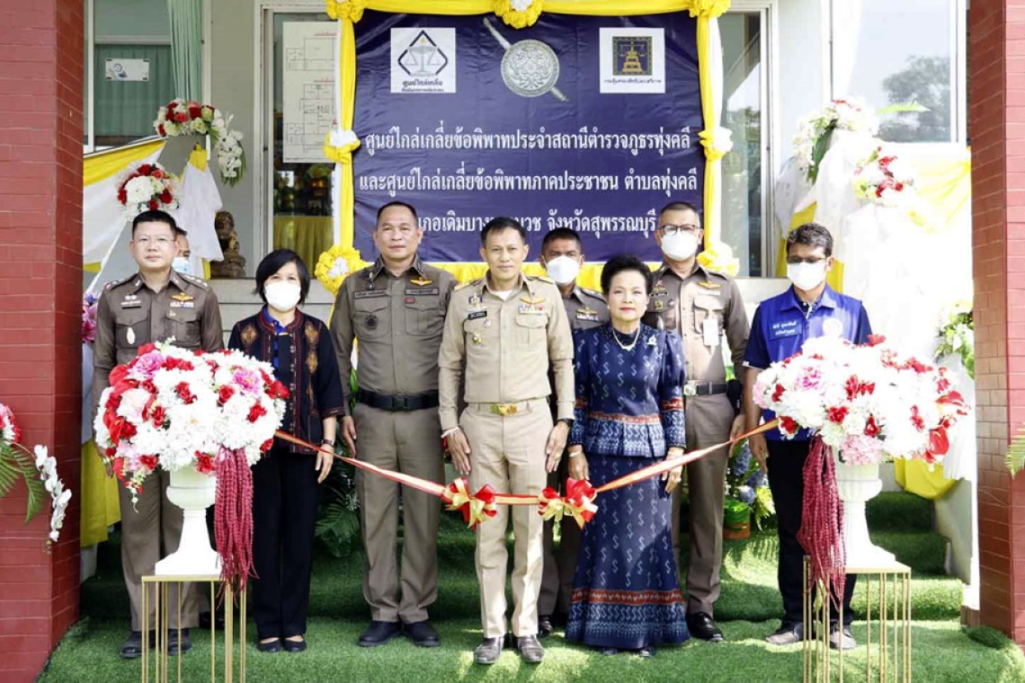 วันที่ 5 พ.ค.66 นายธีรยุทธ์ จันทร์ดิษฐวงษ์  รองผู้ว่าราชการจังหวัดสุพรรณบุรี เป็นประธานเปิด ศูนย์ไกล่เกลี่ยข้อพิพาทสถานีตำรวจภูธรทุ่งคลี โดยมี นางพินิต ธีระพงศ์ไพบูลย์ ประธานศูนย์ไกล่เกลี่ยข้อพิพาทภาคประชาชนตำบลทุ่งคลี กล่าวรายงาน พร้อมด้วยพ.ต.อ.เฉลิมวุฒิ วงษ์เวียงจันทร์ รอง ผบก.ภ.จว.สุพรรณบุรี พ.ต.อ.จอมพล รุจิรดำรงชัย ผกก.สภ.ทุ่งคลี หัวหน้าส่วนราชการภาครัฐ ภาคเอกชน และเจ้าหน้าที่ตำรวจ สภ.ทุ่งคลี เข้าร่วมพิธี ก่อนจะเข้าตรวจเยี่ยมการดำเนินงานของศูนย์ไกล่เกลี่ยข้อพิพาทภาคประชาชน บริเวณชั้น2 อาคารสถานีตำรวจภูธรทุ่งคลี