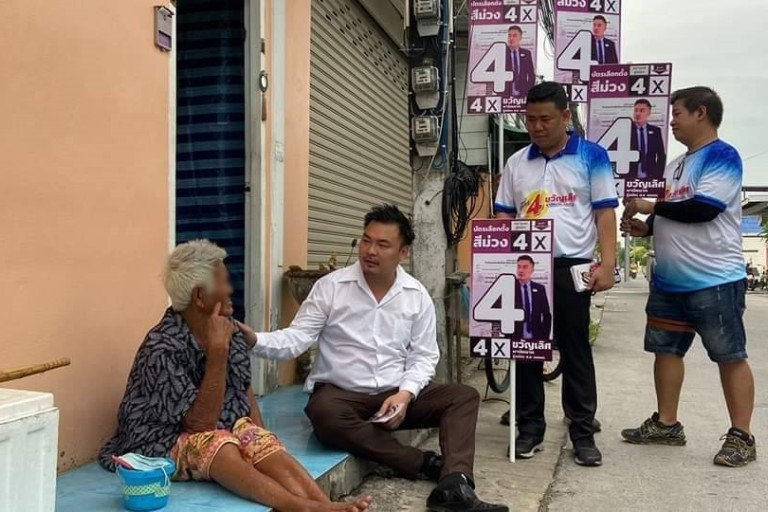นายขวัญเลิศ พานิชมาท ผู้สมัครสมาชิกสภาผู้แทนราษฎร เบอร์ 4 เขต 6 กล่าวว่า ตนขอชูผลงานที่เป็นจริง จาก 4 ปี ที่ผ่านมา ขวัญเลิศ พานิชมาท ไม่เคยทอดทิ้งพี่น้องประชาชน ไม่ว่าจะเจอกับเหตุการณ์ปัญหาวิกฤติโควิด 19 , พายุถล่ม, น้ำท่วม, ช่วยเหลือผู้ป่วยติดเตียง, คนไร้บ้าน, พร้อมทั้งยังเดินนำหน้าพาชาวบ้านร้องขอความเป็นธรรมจากหน่วยงานรัฐ