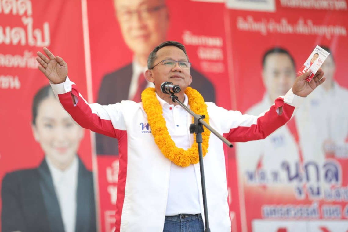 “แต่ถ้าเลือกพรรคเพื่อไทย ไม่ถึงครึ่ง แล้วไปเลือกพรรคอื่น ได้ลุงเป็นนายกฯต่อแน่นอน ดังนั้น ขณะนี้ การหาเสียงเข้าโค้งสุดท้ายแล้ว ถ้าเปรียบเป็นมวย ก็ยกสุดท้ายแล้ว ซึ่งพรรคเพื่อไทย ไล่ชกลุง จนหน้าตาบวมไปหมดแล้ว แต่ถ้าไม่น็อก เราจะเจอกรรมการชูมือลุงชนะแน่อน เพราะการเลือกตั้งรอบนี้ จะไว้วางใจไม่ได้ ต้องช่วยกันจับตา เพราะดูได้จากการเลือกตั้งล่วงหน้า ที่พี่น้องประชาชน โวยกันทั่วประเทศ ทำให้เราต้องมาช่วยกันน็อกลุงให้ชนะขาดไปเลย รวมถึงขอยืนยันว่า พรรคเพื่อไทย ทำงานหนัก จะยกเก้าอี้นายกฯให้คนอื่นได้อย่างไร โดยเฉพาะลุงป้อม ยิ่งยกให้ไม่ได้เลย เพราะขนาดตัวเองยังถูกยกขึ้นเวทีปราศรัยอยู่เลย ดังนั้น พรรคเพื่อไทย ไม่มียกเก้าอี้นายกฯให้ใครอย่างแน่นอน” นายณัฐวุฒิ กล่าว