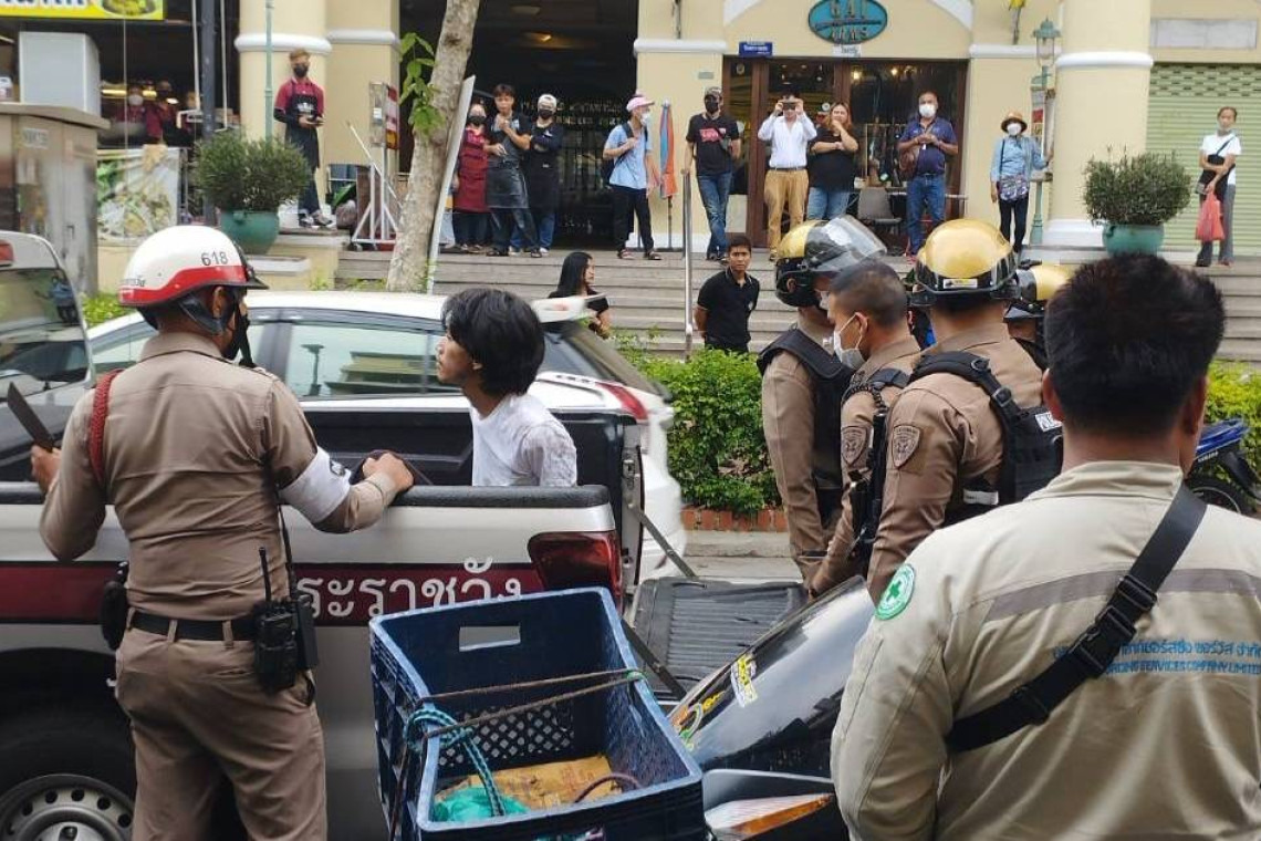 เมื่อเวลา 17.00 น.วันที่ 11 พ.ค. พ.ต.อ.ทศพล อำไพพิพัฒน์กุล ผกก.สน.สำราญราษฎร์ นำกำลังเจ้าหน้าที่สายตรวจ สนธิกำลังกับตำรวจ สน.พระราชวัง และพลเมืองดีล้อมจับกุมตัว นายทักษิณ จาติเกตุ หรือโจโจ้ อายุ 23 ปี ชาว จ.พระนครศรีอยุธยา พร้อมของกลางอาวุธปืน ขนาด 9 มม.ยี่ห้อซิกซาวเออร์ รุ่น พี 938 จำนวน 1 กระบอก ซองกระสุน 1 อัน และค้อน 1 อัน โดยจับกุมตัวได้หลังใช้ค้อนทุบกระจกตู้โชว์อาวุธปืน ของร้านปืน เลขที่ 103 แขวงบูรพาภิรมย์ เขตพระนคร กทม.แล้ววิ่งหลบหนีไปทางถนนบูรพา ห่างจุดเกิดเหตุไม่เกิน 1 กิโลเมตร