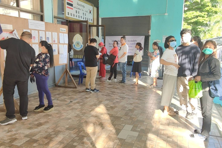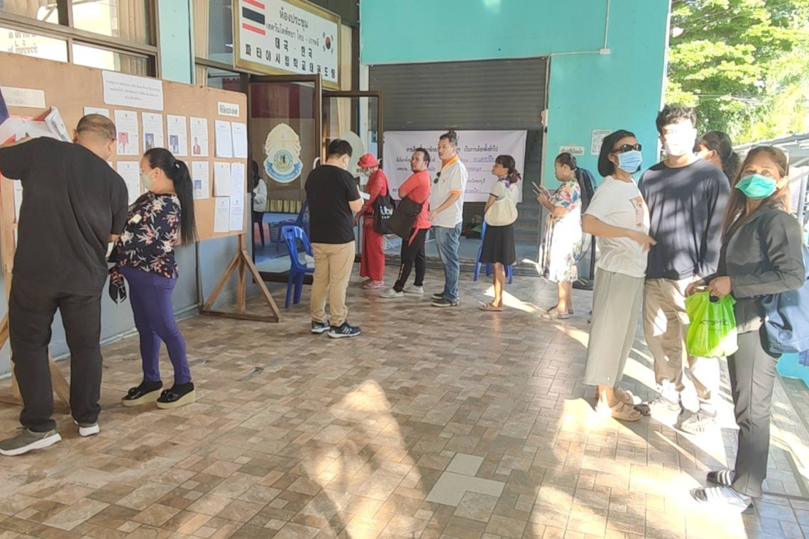 บรรยากาศเปิดหีบเลือกตั้ง ส.ส.ชลบุรี ประชาชนตื่นตัวทยอยต่อแถวใช้สิทธิ์เนืองแน่น