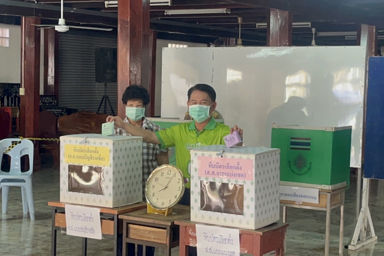 ศาสตราจารย์สันทัด ศิริอนันต์ไพบูลย์ กรรมการการเลือกตั้ง นายณัฐภัทร สุวรรณประทีป ผู้ว่าราชการจังหวัดสุพรรณบุรี นายศรีธรรม ราชแก้ว ปลัดจังหวัดสุพรรณบุรี น.ส.สมิหรา เดชะอังกูร ผอ.กกต.จังหวัดสุพรรณบุรี หัวหน้าหน่วยงาน ภาคีเครือข่าย คณะกรรมการการเลือกตั้งประจำเขตเลือกตั้ง ผู้อำนวยการการเลือกตั้งประจำเขตเลือกตั้ง และผู้ที่เกี่ยวข้องทุกฝ่าย ตรวจเยี่ยมติดตามและสังเกตการณ์การลงคะแนนเลือกตั้ง ตรวจติดตามและสังเกตการณ์การลงคะแนนเลือกตั้ง พื้นที่จังหวัดสุพรรณบุรี ประกอบด้วย จุดที่ 1 หน่วยเลือกตั้งที่ 12 ศาลาการเปรียญวัดสุวรรณภูมิ ถนนพระพันวษา ตำบลท่าพี่เลี้ยง อำเภอเมืองสุพรรณบุรี จังหวัดสุพรรณบุรี บรรยากาศก่อนเปิดหีบเลือกตั้ง มีประชาชนมานั่งรอลงคะแนนก่อน เวลา 08.00น ขณะที่นายณัฐภัทร สุวรรณประทีป ผู้ว่าราชการจังหวัดสุพรรณบุรี ได้มาลงคะแนนเลือกตั้ง พร้อมทั้งหย่อนบัตร แยกแบบแบ่งเจตและบัญชีรายชื่อให้ประชาชนดูด้วย เพื่อป้องกันการสับสน ในการหย่อนบัตรผิด