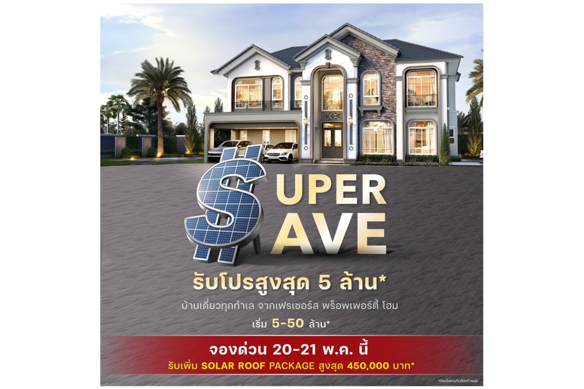 บริษัท เฟรเซอร์ส พร็อพเพอร์ตี้ โฮม (ประเทศไทย) จำกัด หรือ FPH เปิดเผยว่า บริษัทได้จัดโปรโมชั่นสุดพิเศษเพื่อเป็นการลดค่าใช้จ่ายให้กับลูกค้า กับ “Super Save จองด่วน!!.... มาตรการลดเกินคุ้ม” สำหรับลูกค้าที่สนใจจองโครงการบ้านหรู และบ้านเดี่ยว ทั้งโครงการพร้อมอยู่และโครงการใหม่ หลากหลายแบรนด์ โดยมอบสิทธิพิเศษกับส่วนลดสูงสุดถึง 5,000,000 บาทและเพื่อลดการใช้พลังงานอย่างยั่งยืนด้วยพลังงานสะอาดยังมอบความพิเศษเพิ่มเติมกับแพคเกจ SOLAR ROOF มูลค่าสูงสุด 450,000 บาท เพียงจองในวันที่ 20 - 21 พฤษภาคมนี้เท่านั้น