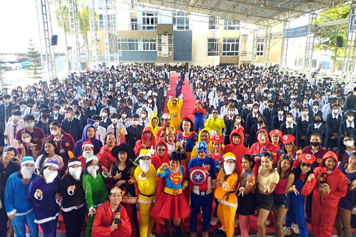 วันที่16 พ.ค.66 ผู้สื่อข่าวรายงานบรรยากาศเปิดเทอมของโรงเรียนในพื้นที่จังหวัดระยองเป็นไปอย่างคึกคัก โดยเฉพาะที่วิทยาลัยอาเทค ระยอง ต.เชิงเนิน อ.เมือง จ.ระยอง นำโดย นายไพศาล เชาวน์ดี ผอ.วิทยาลัยเทคโนโลยีระยองบริหารธุรกิจ นางประนอม ยางสง่า รองผอ.วิทยาลัยเทคโนโลยีระยองบริหารธุรกิจ คณะครูฝ่ายต่างๆและนักศึกษา เข้าร่วมกิจกรรมอย่างคับคั่ง พบว่าวันนี้ทางผอ.ได้แต่งกายชุดกัปตันอเมริกา ออกมากล่าวต้อนรับนักศึกษาใหม่ คณะครูต่างร่วมแต่งกายชุดมาสคอตซุปเปอร์ฮีโร่ เทเลทับบี้ สโนไวท์กับคนแคระทั้งเจ็ด มาริโอ้ หรือแม้แต่อีกี้ จากธาตุทองซาวด์ ที่กำลังเป็นกระแสอยู่ในโลกออนไลน์ เต้นต้อนรับนักเรียนสร้างความคุ้นเคยในการเปิดภาคเรียนวันแรก โดยอาจารย์แต่ละฝ่ายได้ออกมาแนะนำตัวกับนักศึกษาใหม่แนะแนวทางต่างในการเรียนให้นักศึกษา สร้างรอยยิ้ม เสียงหัวเราะ และความสนุกสนานแก่นักศึกษาเป็นอย่างมาก