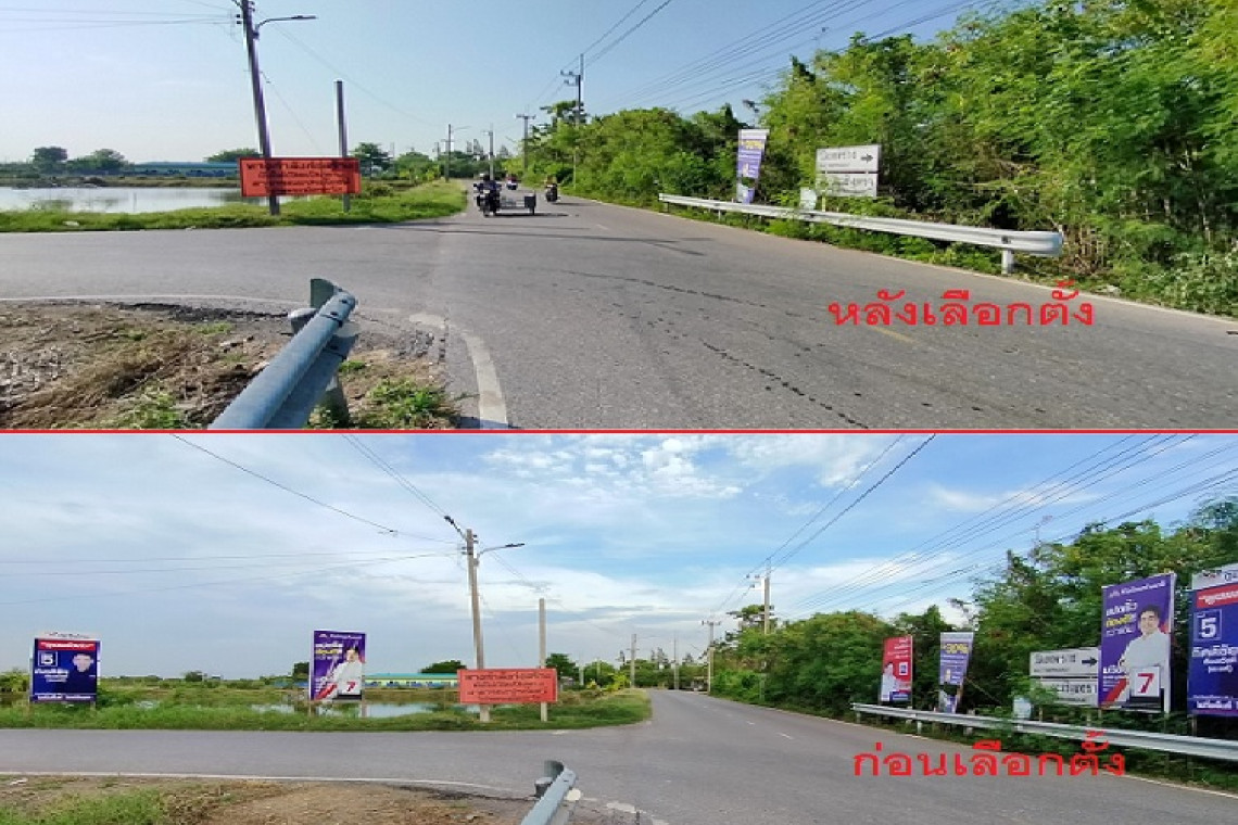 ซึ่งถือเป็นทำเลทองที่ประชาชนผู้ที่ขับขี่ยานพาหนะสัญจรผ่านไปมาในพื้นที่จะสามารถมองเห็นได้ง่ายนั้น ผู้สมัครจากหลายพรรคการเมืองล้วนต่างพากันเข้ามาแย่งชิงจับจองพื้นที่ในการติดตั้งแผ่นป้ายหาเสียงกันอย่างคึกคัก แบบเรียงรายดาหน้ากันเข้ามาจนแน่นพื้นที่ แต่เมื่อการเลือกตั้งได้ผ่านพ้นเลยไปแล้ว และผู้สมัครจากทุกพรรคการเมืองทราบถึงผลคะแนนจากประชาชนกันอย่างถ้วนหน้าแล้วนั้น