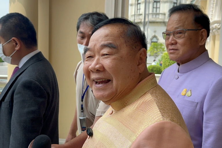 เมื่อถามถึงกระแสการยุบพรรคพปชร. เพื่อไปรวมกับพรรคเพื่อไทย (พท.) เป็นจริงหรือไม่ พล.อ.ประวิตร กล่าวว่า ต้องไปถามคนที่คิด เขาคิดแล้วพูดมา เมื่อเช้าตนยังไม่พูดอะไรเลย ตนยังไม่คิดอะไรเลย ตนอยู่เฉยๆ แท้ๆ