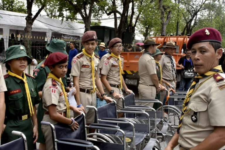 "เทคนิคนครนายก"จัดกิจกรรมบำเพ็ญเพียรวาดภาพในหลวงรัชกาลที่ 9 ดร.ชัยยศ อิ่มสุวรรณ์ รองปลัดกระทรวงศึกษาธิการ (ศธ.) ในฐานะเลขาธิการสำนักงานลูกเสือแห่งชาติ เปิดเผยว่า เนื่องจากที่ผ่านมา มีประชาชนจำนวนมาก เดินทางเข้าไปยังบริเวณท้องสนามหลวง เพื่อไปถวายสักการะพระบรมศพพระบาทสมเด็จพระปรมินทรมหาภูมิพลอดุลยเดช ดังนั้น เพื่อเป็นการอำนวยความสะดวกและเป็นการฝึกปฏิบัติ เรื่องมีจิตอาสาของลูกเสือ เนตรนารีและยุวกาชาด จึงได้มอบให้สำนักการลูกเสือ ยุวกาชาด และกิจการนักเรียน ศธ. ร่วมกับสำนักงานลูกเสือแห่งชาติ กระทรวงพัฒนาสังคมและความมั่นคงของมนุษย์(พม.) สำนักงานตำรวจแห่งชาติ และกองทัพภาคที่ 1 ระดมลูกเสือเหล่าต่าง ๆ ยุวกาชาดและเนตรนารี จิตอาสา มาบำเพ็ญประโยชน์ทำความดีช่วยเหลือประชาชน ที่ไปถวายสักการะพระบรมศพ ที่บริเวณสนามหลวง โดยอาสาสมัครทั้งหมดจะได้รับการฝึกฝนตรงกับภารกิจที่ปฏิบัติทั้งการจราจร การปฐมพยาบาล การดูแลผู้ป่วย เป็นต้น "สิ่งนี้เป็นบทเรียนภาคปฏิบัติที่ไม่สามารถหาได้จากในห้องเรียน เป็นการฝึกความอดทน ความเสียสละ ความมีน้ำใจ แต่สิ่งที่ได้รับคือความภาคภูมิใจและความสุขจากการเป็นผู้ให้ รอยยิ้มและคำขอบคุณจากผู้รับบริการ ที่ไม่มีครูสอนต้องเรียนรู้เอง ซึ่งมีพระบาทสมเด็จพระปรมินทรมหาภูมิพลอดุลยเดช พระผู้ทรงเป็นครูแห่งแผ่นดิน ได้ทรงปฏิบัติเป็นแบบอย่างนั่นเอง ทั้งนี้ หลังเปิดเทอมแล้วจะมีการแบ่งการปฏิบัติหน้าที่เป็น 2 กะ ผลัดเปลี่ยนกันไปเพื่อไม่ให้กระทบกับการเรียน" รองปลัด ศธ.กล่าวและว่า นอกจากนี้ ยังมีบริการรถวีลแชร์ 200 คัน สำหรับเด็ก ผู้สูงอายุ ผู้พิการและผู้ป่วยที่บริเวณหน้าวัดมหาธาตุ และศาลหลักเมือง เวลา 09.00-16.00 น.โดยที่ผ่านมามีประชาชนขอรับบริการวีลแชร์ ประมาณ 100 คนต่อวัน ซึ่งสอบถามการบริการที่โทร.08-1648-9869 ผู้สื่อข่าวรายงานว่า นักเรียน นักศึกษา และครูสาขาวิชาศิลปกรรม วิทยาลัยเทคนิคนครนายก จำนวน 49 คน ร่วมแรงร่วมใจวาดภาพพระราชกรณียกิจและพระบรมฉายาลักษณ์ พระบาทสมเด็จพระปรมินทรมหาภูมิพลอดุลยเดช จำนวน 29 ภาพ เพื่อน้อมเกล้าฯ ถวายอาลัย และน้อมสำนึกในพระมหากรุณาธิคุณ โดยนายสมประสงค์ สิงห์สุวรรณ ผอ.วิทยาลัยเทคนิคนครนายก กล่าวว่า กิจกรรมบำเพ็ญเพียรวาดภาพถวายพ่อ 29 ภาพ เป็นการแสดงออกถึงทักษะการวาดภาพของนักเรียน นักศึกษา สาขาวิชาศิลปกรรม ระดับชั้น ปวช.และ ปวส.จำนวน 40 คน และครูอีก9 คนในการวาดภาพ 29 ภาพ โดยนำภาพต้นแบบมาจากภาพพระราชกรณียกิจและพระบรมฉายาลักษณ์ในอิริยาบถต่างๆ วาดด้วยสีอะคริลิกโทนสีน้ำต