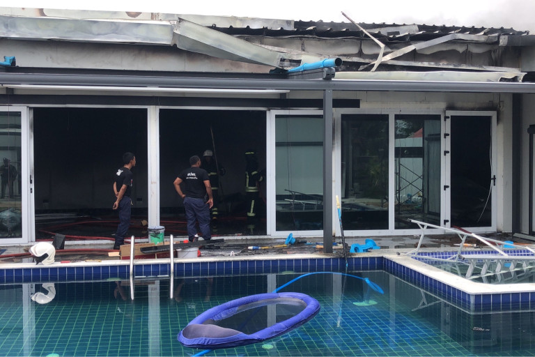 ที่เกิดเหตุเป็นบ้านพูลวิลล่าหรู 1 ชั้น ปลูกบนเนื้อที่กว่า 200 ตารางวา แบ่งเป็นอาคาร 2 หลัง และสระว่ายน้ำขนาดใหญ่ พบกลุ่มควันมาจากอาคารหลังแรก มีเพลิงไหม้ลุกโชนภายในอาคาร และลุกลามไปยังหลังคา เจ้าหน้าที่นำรถดับเพลิงระดมฉีดน้ำสกัด ใช้เวลากว่า 30 นาที จึงสามารถควบคุมเพลิงได้สำเร็จ