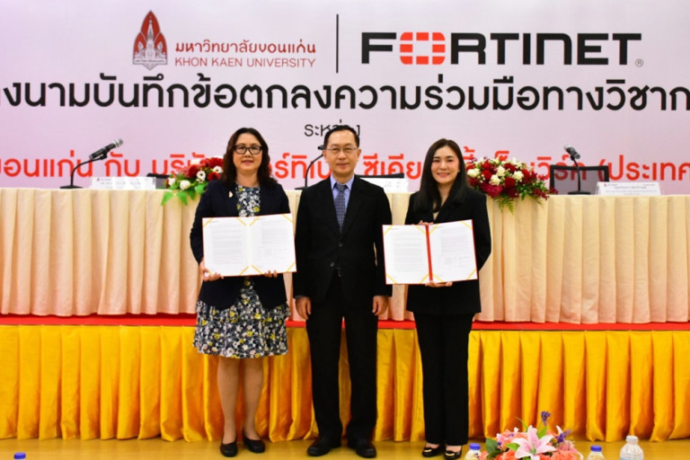 มหาวิทยาลัยขอนแก่น และ บริษัท ฟอร์ทิเนท ซีเคียวริตี้ เน็ทเวิร์ค (ประเทศไทย) จำกัด จัดพิธีลงนามความร่วมมือ ( MOU ) ระหว่างรองศาสตราจารย์สิรภัทร เชี่ยวชาญวัฒนา คณบดีวิทยาลัยการคอมพิวเตอร์ และคุณภัคธภา ฉัตรโกเมศ ผู้จัดการประจำประเทศไทย ฟอร์ทิเนท โดยมีรองศาสตราจารย์ชาญชัย พานทองวิริยะกุล อธิการบดีมหาวิทยาลัยขอนแก่นเป็นประธานและกล่าวต้อนรับ ณ วิทยาลัยการคอมพิวเตอร์ อาคารวิทยวิภาส มหาวิทยาลัยขอนแก่น