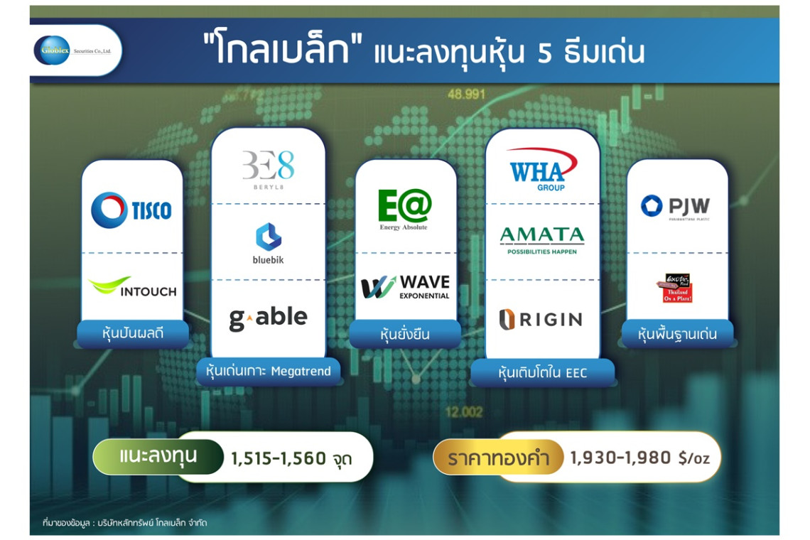 3.หุ้นยั่งยืน เช่น EA ดำเนินธุรกิจเป็นมิตรกับสิ่งแวดล้อม โรงไฟฟ้าพลังงานทดแทน รถบัสไฟฟ้า เรือไฟฟ้า และ WAVE ดำเนินธุรกิจ Carbon Credit 4.หุ้นเติบโตใน EEC เช่น AMATA มีนิคมอุตสาหกรรมในจังหวัดชลบุรีและระยอง, WHA มีนิคมอุตสาหกรรมในจังหวัดชลบุรีและระยอง และ ORI มีโครงการที่อยู่อาศัย และโรงแรมในเขตพื้นที่ EEC และ 5.หุ้นพื้นฐานเด่น อาทิ PJW ผลการดำเนินงานปี 2566 เติบโตต่อเนื่อง โดยมีแรงหนุนจากเศรษฐกิจและการท่องเที่ยวกลับมาฟื้นตัว และ XO ธุรกิจปี 2566 ฟื้นตัวสู่ 20% เนื่องจากได้แรงหนุนจากคำสั่งซื้อใหม่จากสหรัฐ แคนาดา และเม็กซิโก