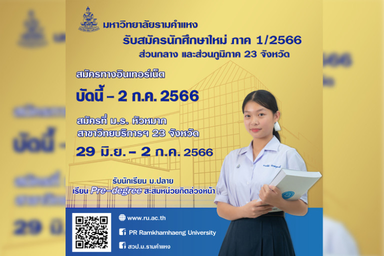 มหาวิทยาลัยรามคำแหง รับนักศึกษาใหม่ระดับปริญญาตรี ภาค 1 ปีการศึกษา 2566 ส่วนกลางและส่วนภูมิภาค 23 จังหวัด