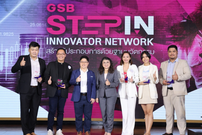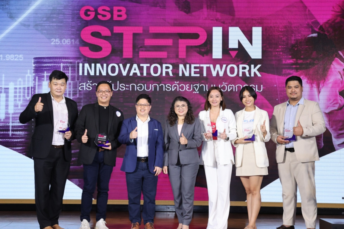 นางปรางมาศ เธียรธนู รองผู้อำนวยการธนาคารออมสิน กลุ่มลูกค้าฐานรากและสนับสนุนนโยบายรัฐ และดร.กริชผกา บุญเฟื่อง รองผู้อำนวยการด้านระบบนวัตกรรม สำนักงานนวัตกรรมแห่งชาติ (องค์การมหาชน) ร่วมมอบโล่รางวัลผู้ประกอบการฐานนวัตกรรมดีเด่น ในโครงการ GSB Step In Innovator Network สร้างผู้ประกอบการด้วยฐานนวัตกรรม ซึ่งเป็นโครงการที่ธนาคารออมสิน ร่วมกับสำนักงานนวัตกรรมแห่งชาติ (องค์การมหาชน) จัดขึ้นเป็นครั้งแรก เพื่อพัฒนาศักยภาพทางธุรกิจของผู้ประกอบการ SMEs ให้มีฐานนวัตกรรม โดยมุ่งเน้นการนำนวัตกรรมมาใช้เพื่อสร้างธุรกิจที่สามารถเติบโตและประสบความสำเร็จอย่างยั่งยืน พร้อมยกระดับธุรกิจด้วยการนำความรู้เกี่ยวกับนวัตกรรมและเทคโนโลยีมาต่อยอดภาคการผลิตและบริการเพื่อเพิ่มผลิตภาพและสร้างมูลค่าเพิ่มให้กับธุรกิจ รวมทั้งสนับสนุนการเข้าถึงแหล่งเงินทุนของภาครัฐและเอกชน ซึ่งเป็นไปตามแผนบูรณาการภารกิจเพื่อสังคม เข้าในกระบวนการดำเนินงานที่สำคัญของธนาคาร (Social Mission Integration) ตามยุทธศาสตร์ธนาคารเพื่อสังคมของธนาคารออมสิน และสอดคล้องกับนโยบายของรัฐในการสนับสนุนผู้ประกอบการ SMEs ให้มีความเข้มแข็ง เพื่อเป็นกลไกหลักในการขับเคลื่อนเศรษฐกิจของประเทศต่อไป