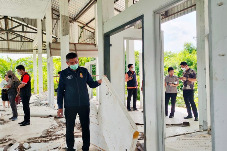 วันที่ 1 มิ.ย.66 ภายหลังสื่อโซเชียลเผยแพร่ข่าว โรงฆ่าแพะที่จังหวัดสตูล ถูกปล่อยทิ้งร้างเหลือแต่โครงสร้าง นานนับ 10 ปี ทางด้าน ป.ป.ช.สตูล นำโดยนายธนกฤต เลิศวิริยวรางกูร ผู้อำนวยการสำนักงาน ป.ป.ช. พร้อมเจ้าหน้าที่ ร่วมกับนายประสงค์ เรืองสวัสดิ์ ปศุสัตว์จังหวัดสตูล ลงตรวจสอบจุดก่อสร้างพื้นที่หมู่ที่ 2 ต.ควนโพธิ์ อ.เมือง จ.สตูล หลังเข้าประชุมรับทราบปัญหาจากปศุสัตว์จังหวัด ก่อนลงพื้นที่จริงพบสภาพโรงฆ่าแพะ เป็นจริงตามที่มีการนำเสนอ โดยสภาพทั่วไปพบว่าเป็นอาคารที่เตรียมไว้สำหรับใช้เป็นคอกขังสัตว์ และอาคารสำหรับเตรียมแปรรูป ห้องเย็น ที่เหลือแต่โครงสร้าง ฝากั้นถูกรื้อถอนรวมทั้งฝ้าเพดานและพนัง อุปกรณ์เครื่องใช้ไฟฟ้า แม้กระทั่งวัสดุที่มีเหล็กเส้น สแตนเลส แม้แต่กลอนลูกบิดประตู ก็ถูกถอดไม่เหลือสภาพ แม้กระทั่งภายในห้องน้ำเหลือเพียงแต่โถสุขภัณฑ์ไว้ให้ดูต่างหน้าเท่านั้น