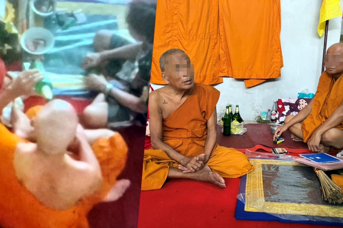เมื่อเวลา 18.00 น. วันที่ 5 มิ.ย.66 ผู้สื่อข่าวรายงานว่า โยมอัฎฐาก ผู้ดูแลพระภิกษุสามเณร ประจำที่พักสงฆ์แห่งหนึ่ง ตั้งอยู่ตำบลปากน้ำ อำเภอเมืองระนอง จังหวัดระนอง  ได้ร้องเรียนมีพระภิกษุสงฆ์ไทย จำนวน 2 รูป ที่เดินทางมาจำพรรษาจากต่างจังหวัด พร้อมฆราวาส 1 คน นั่งล้อมวงกันซดเบียร์ และดื่มเหล้าขาว อยู่บนศาลาอเนกประสงฆ์  โดยจะไล่ผู้ดูแลที่พักสงฆ์  ไม่ให้ใครเข้ามาบนศาลา สร้างความเอือมระอา ต่อพฤติกรรมที่ไม่เหมาะสม โดยได้มีการแอบบันทึกภาพขณะนั่งล้อมวง และยกขวดเบียร์ขึ้นดื่ม    ก่อนไปร้องเรียนกับผู้ใหญ่บ้าน และเจ้าหน้าที่ที่เกี่ยวข้องในพื้นที่เข้ามาตรวจสอบ