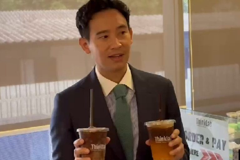 เมื่อเวลา 12.00 น. วันที่ 6 มิ.ย. 66 ที่พรรคเพื่อไทย (พท.) นายพิธา ลิ้มเจริญรัตน์ หัวหน้าพรรคและแคนดิเดตนายกรัฐมนตรีพรรคก้าวไกล ได้แวะร้านกาแฟ Think Lab ที่ตั้งอยู่ในที่ทำการพรรคเพื่อไทย เพื่อซื้อเครื่องดื่ม เมนูอเมริกาโนน้ำส้ม เครื่องดื่มแก้วโปรดของตัวเอง และเมนูมิ้นต์ช็อก เครื่องดื่มแก้วโปรดของ น.ส.แพทองธาร ชินวัตร หรืออุ๊งอิ๊ง หัวหน้าครอบครัวเพื่อไทย