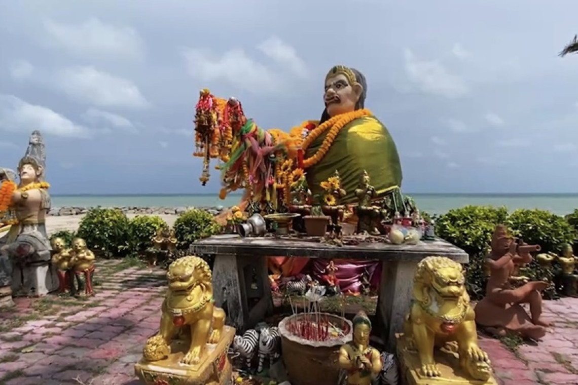เมื่อเดินทางไปถึงรูปปั้นนางยักษ์ ที่ใส่ชุดไทย พร้อมด้วยพวงมาลัยดอกไม้ที่มีชาวบ้านนำมาถวายตามความเชื่อ ตั้งตระหง่านอยู่ริมชายหาด โดยช่วงนี้พบว่า มีคลื่นลมแรง เพราะเป็นช่วงมรสุม จึงทำให้ชายหาดเงียบเหงาไร้เงานักท่องเที่ยว มีเพียงพ่อค้าแม่ค้าที่ขายของกันอยู่ริมชายหาด
