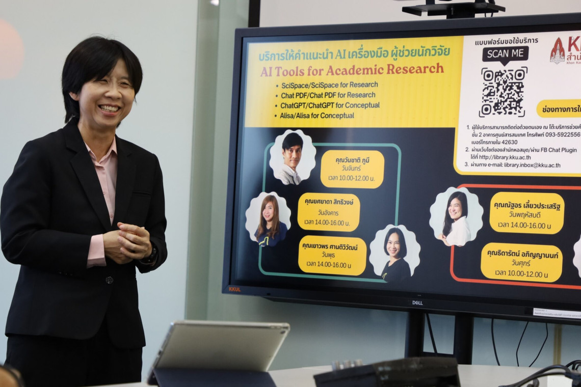 “สำนักหอสมุด มหาวิทยาลัยขอนแก่น มีคอร์ส Learning Program ที่จะสอนวิธีการใช้เทคโนโลยีสารสนเทศและ AI ควบคู่ไปการเปิดคลินิก AI คอยให้คำปรึกษาแนะนำการใช้งาน AI รวมถึงเครื่องมือป้องกันการคัดลอกผลงานของบุคคลอื่นและเครื่องมือตรวจจับข้อความที่สร้างด้วย AI ในทุกวันจันทร์ - ศุกร์ เพื่อให้บริการเชิงลึกอย่างครบวงจร”