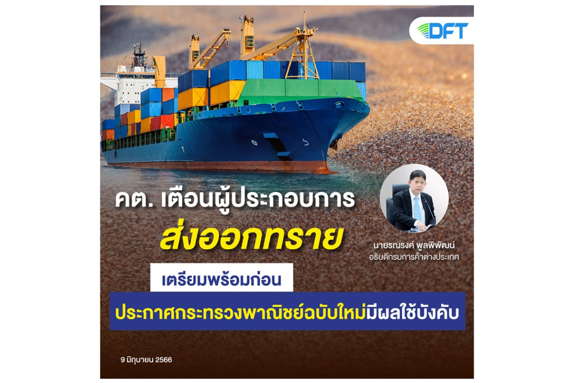 กระทรวงพาณิชย์โดยกรมการค้าต่างประเทศทบทวนประกาศควบคุมการส่งออกทรายโดยห้ามส่งออกสินค้าทรายธรรมชาติทุกชนิด ขอให้ผู้ประกอบการเตรียมความพร้อมก่อนประกาศใหม่จะมีผลใช้บังคับ 11 พ.ย.66