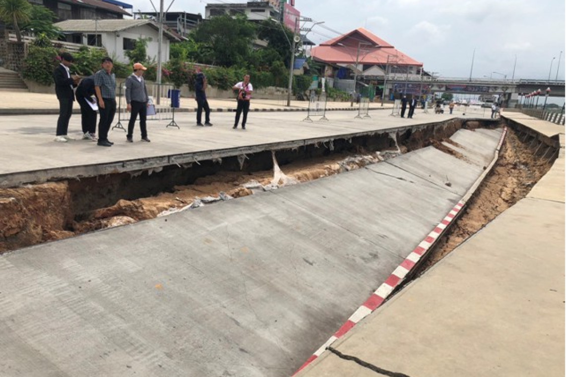 รองอธิบดี กล่าวเพิ่มเติมว่า จากสถานการณ์ดังกล่าว กรมฯ ได้สั่งการให้ปิดกั้นพื้นที่ป้องกันแนวเขตอันตรายทันที และแจ้งเตือนประชาชนที่สัญจรในพื้นที่ พร้อมวางแผนการแก้ไขปัญหาที่เกิดขึ้นอย่างเร่งด่วน โดยจะทำการรื้อถอนโครงสร้างส่วนบนของเขื่อนป้องกันตลิ่ง ทางเท้า ราวกันตก รวมถึงถนนคอนกรีตเสริมเหล็กที่เกิดการทรุดตัวออก เพื่อลดน้ำหนักโครงสร้าง และป้องกันการทรุดตัวเพิ่ม หลังจากนั้นจะทำโครงสร้างป้องกันชั่วคราว โดยการติดตั้งแผ่น Sheet Pile และเสริมเสาเข็มไม้ตลอดแนว พร้อมเรียงหินปิด เพื่อเสริมความแข็งแรงของชั้นดินด้านบนและป้องกันหน้าดินไม่ให้ได้รับความเสียหายเพิ่ม สำหรับแนวทางการแก้ไขระยะยาว กรมฯ จะดำเนินการออกแบบแก้ไขโครงสร้างเขื่อนป้องกันตลิ่งให้มีความมั่นคงแข็งแรงต่อสภาพพื้นที่และคืนสภาพให้ประชาชนสามารถใช้งานเขื่อนป้องกันตลิ่งและพื้นที่หลังเขื่อนได้อย่างปลอดภัย อนึ่งสำหรับการตรวจสอบสาเหตุที่แท้จริง กรมฯ จะแต่งตั้งคณะกรรมการตรวจสอบข้อเท็จจริงเพื่อหาสาเหตุโดยละเอียดต่อไป