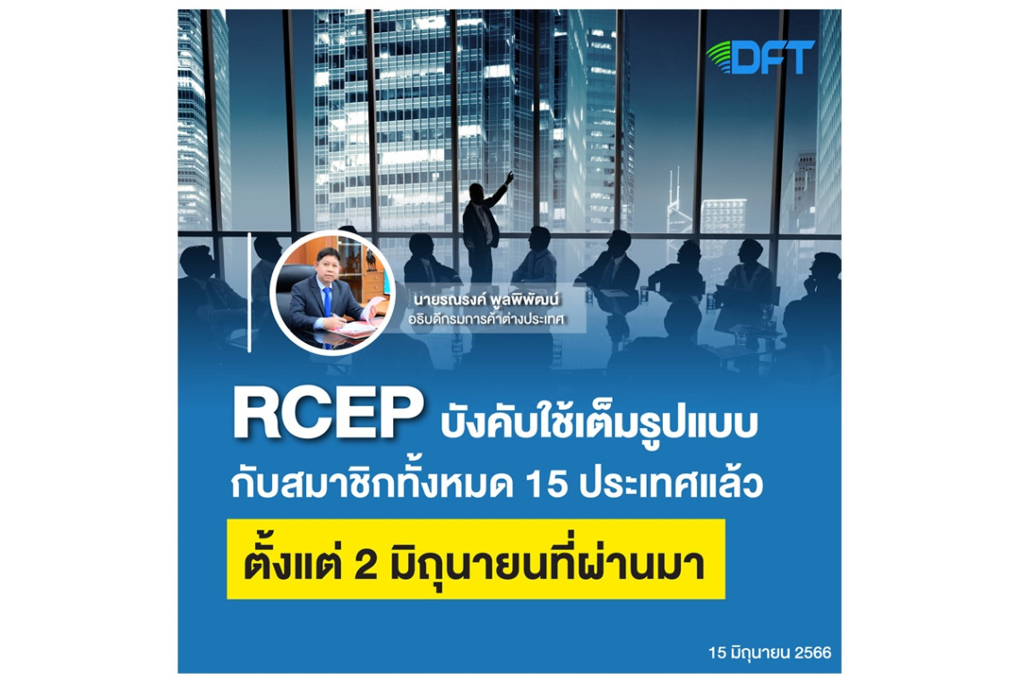 นายรณรงค์ พูลพิพัฒน์ อธิบดีกรมการค้าต่างประเทศ เปิดเผยว่า RCEP ได้มีผลบังคับใช้ตั้งแต่วันที่ 1 มกราคม 2565 โดยในปี 2565 มีผลบังคับใช้กับสมาชิกทั้งหมด 13 ประเทศ ได้แก่ บรูไน กัมพูชา สปป.ลาว สิงคโปร์ ไทย เวียดนาม ออสเตรเลีย จีน ญี่ปุ่น นิวซีแลนด์ เกาหลีใต้ มาเลเซีย และเมียนมา และในปี 2566 มีผลบังคับใช้กับอินโดนีเซียเมื่อวันที่ 2 มกราคม 2566 และล่าสุด กับฟิลิปปินส์ในวันที่ 2 มิถุนายน 2566 ส่งผลให้มีผลบังคับใช้กับสมาชิกรวม 15 ประเทศอย่างเต็มรูปแบบ ดังนั้น กรมการค้าต่างประเทศในฐานะหน่วยงานรับผิดชอบการออกหนังสือรับรองถิ่นกำเนิดสินค้า (Certificate of Origin: C/O) จึงได้ออกประกาศกรมการค้าต่างประเทศฉบับใหม่เพื่อรองรับการมีผลบังคับใช้ดังกล่าว โดยได้รวบรวมประกาศกรมการค้าต่างประเทศที่เกี่ยวข้องกับการออกหนังสือรับรองถิ่นกำเนิดสินค้า Form RCEP ทั้ง 6 ฉบับไว้ในฉบับเดียว และคงเนื้อหาสาระสำคัญของหลักเกณฑ์ต่างๆ ตามที่ความตกลงกำหนดไว้เช่นเดิม เพื่อเป็นการอำนวยความสะดวกให้แก่ผู้ประกอบการในการสืบค้นและอ้างอิงหลักเกณฑ์ต่างๆ ที่เกี่ยวข้อง ไม่ว่าจะเป็นรายชื่อสมาชิก 15 ประเทศของความตกลง RCEP กฎถิ่นกำเนิดสินค้าและกฎถิ่นกำเนิดเฉพาะรายสินค้า (Product Specific Rules: PSR) ตามพิกัด HS 2022 ระเบียบวิธีปฏิบัติในการขอหนังสือรับรองถิ่นกำเนิดสินค้า Form RCEP และรูปแบบของ Form RCEP เป็นต้น