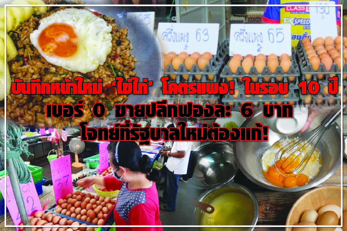 โดยราคา “ไข่ไก่” เบอร์ 0 แผงละ 145 บาท ราคาขายปลีกฟองละ 6 บาท แพงที่สุดในรอบ 10 ปี!!!