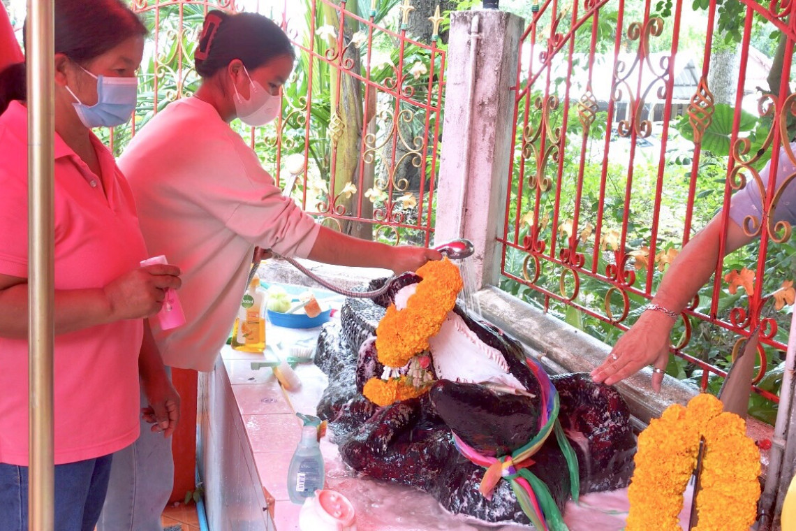 ด้านนางสาวจิตราวดี เดินทางมาจากโคราช กล่าวว่าตนมีความเชื่อเรื่องของจระเข้ และตนเองไม่เคยมาที่วัดแห่งนี้มาก่อน และมีความเชื่อเรื่องของจระเข้พอสมควร อีกอย่างตัวเองติดตามติ๊กต๊อกหมอบี ก็เลยพาครอบครัวมากราบไหว้หลวงพ่อสนิท และถู ลูบ ขัด ทำความสะอาดจระเข้ ก่อนกลับยังได้ซื้อลอตเตอรี่ติดกับบ้านไปด้วย เพราะเชื่อว่าจระเข้ต้องให้โชคตัวเองอย่างแน่นอน