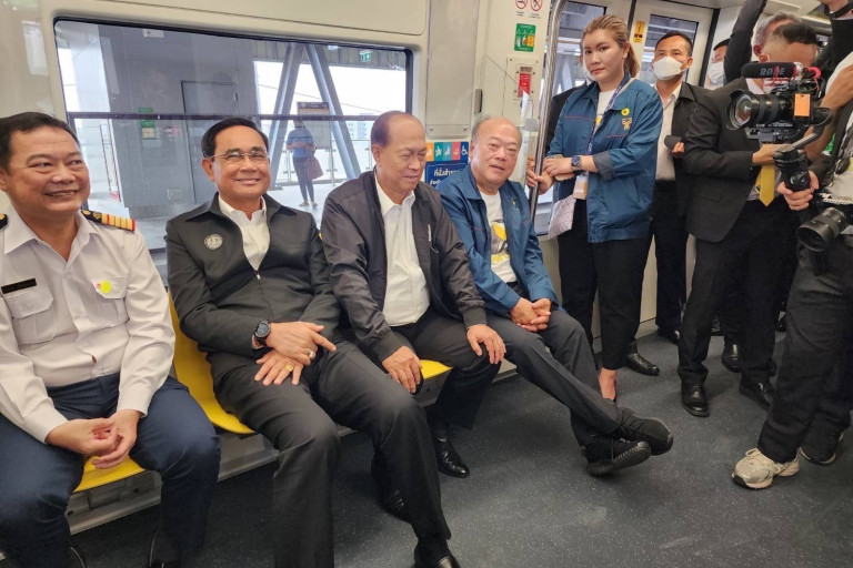 วันนี้ (19 มิ.ย.2566) ประยุทธ์ จันทร์โอชา นายกรัฐมนตรีและรัฐมนตรีว่าการกระทรวงกลาโหม เดินทางถึงศูนย์ซ่อมบำรุง เยี่ยมชมนิทรรศการโครงการรถไฟฟ้าสายสีเหลือง ที่ศูนย์ซ่อมบำรุง ถนนศรีนครินทร์ ใกล้กับสถานีศรีเอี่ยม โดยมีพล.อ.อนุพงษ์ เผ่าจินดา รมว.มหาดไทย นายอธิรัตน์ รัตนเศรษฐ รมช.คมนาคม นายธนกร วังบุญคงชนะ รมต.ประจำสำนักนายกรัฐมนตรี นายสรพงศ์ ไพฑูรย์พงศ์ รองปลัดกระทรวงคมนาคม หัวหน้ากลุ่มภารกิจด้านการขนส่ง นายภคพงศ์ ศิริกันทรมาศ ผู้ว่าการการรถไฟฟ้าขนส่งมวลชนแห่งประเทศไทย และ นายคีรี กาญจนพาสน์ ประธานกรรมการ บริษัท อีสเทิร์น บางกอกโมโนเรล จำกัด พร้อมทั้งได้ร่วมทดสอบการเดินรถเสมือนจริง (Trial Run) ของรถไฟฟ้ามหานคร สายสีเหลือง ในช่วงสถานีศรีอุดม (YL16) ถึง สถานีลาดพร้าว (YL01)