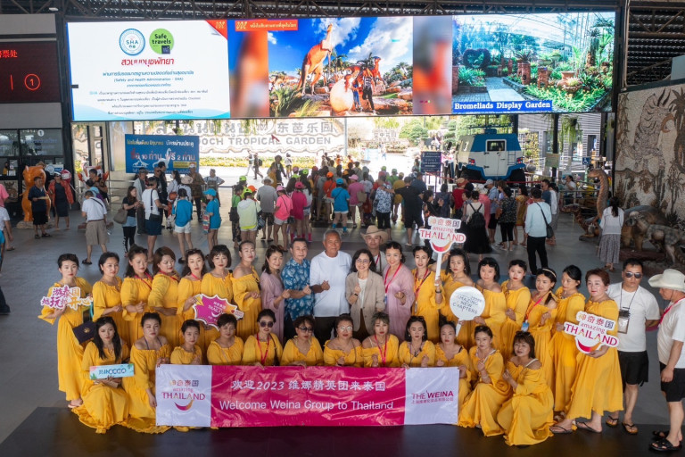 นายกัมพล ตันสัจจา ประธานสวนนงนุชพัทยา ร่วมกับ นายชูวิทย์ ศิริเวชกุล ผู้อำนวยการภูมิภาคเอเชียตะวันออก การท่องเที่ยวแห่งประเทศไทย (ททท.) และนางอโนมา วงษ์ใหญ่ ผู้อำนวยการสำนักงานการท่องเที่ยวแห่งประเทศไทย (ททท) สำนักงานพัทยา ให้การต้อนรับคณะกรุ๊ปทัวร์ชาวจีน