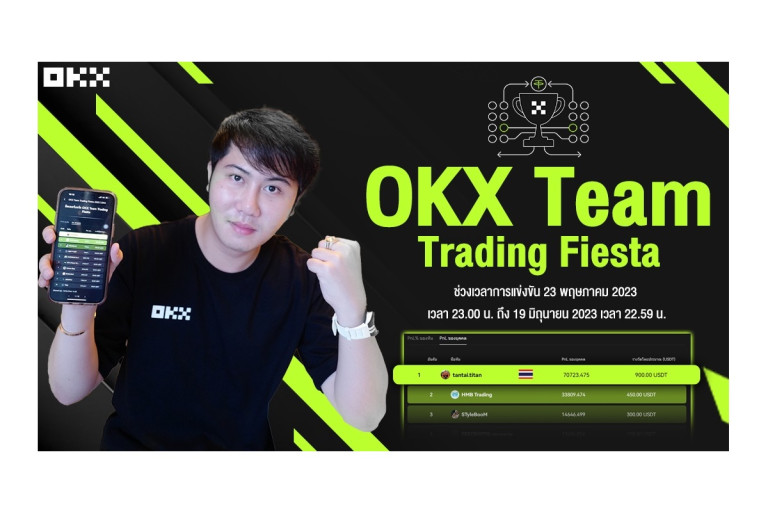OKX กระดานซื้อขายแลกเปลี่ยนสินทรัพย์ดิจิทัล ที่มีผู้ใช้งานกว่า 100 ประเทศทั่วโลก จัดการแข่งขันเทรดคริปโต “OKX TEAM Trading Fiesta” ชิงเงินรางวัลสูงสุดถึง 45,000 USDT หรือประมาณ 1,500,000 บาท ซึ่งจัดขึ้นระหว่างวันที่ 23 พฤษภาคม - 19 มิถุนายน 2566 ที่ผ่านมา โดยมีผู้เข้าร่วมลงทะเบียนแข่งเทรดจำนวน 1,130 คน จากหลายประเทศทั่วโลก แบ่งประเภทการแข่งขันเป็น 2 แบบคือ แบบ PNL บุคคล และแบบ PNL % ประเภททีม ซึ่งภายหลังจบการแข่งขันผู้ที่มีผลกำไรสะสมมากที่สุดจะเป็นผู้ชนะ