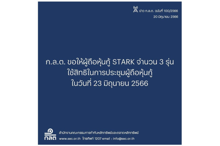 สำนักงานคณะกรรมการกำกับหลักทรัพย์และตลาดหลักทรัพย์ (ก.ล.ต.) ขอให้ผู้ถือหุ้นกู้ STARK ใช้สิทธิในการประชุมผู้ถือหุ้นกู้ ซักถามผู้ออก หรือผู้แทนผู้ถือหุ้นกู้ เพื่อให้ได้ข้อมูลครบถ้วนและเพียงพอต่อการตัดสินใจลงมติ