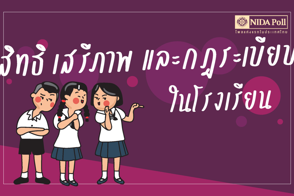 เมื่อวันที่ 25 มิ.ย.66 ศูนย์สำรวจความคิดเห็น “นิด้าโพล” สถาบันบัณฑิตพัฒนบริหารศาสตร์ (นิด้า) เปิดเผยผลสำรวจของประชาชน เรื่อง “สิทธิ เสรีภาพ และกฎระเบียบในโรงเรียน” ทำการสำรวจระหว่างวันที่ 21-23 มิถุนายน 2566 จากประชาชนที่มีอายุ 15 ปีขึ้นไป กระจายทุกภูมิภาค ระดับการศึกษา อาชีพ และรายได้ ทั่วประเทศ รวมทั้งสิ้น จำนวน 1,310 หน่วยตัวอย่าง เกี่ยวกับสิทธิ เสรีภาพและกฎระเบียบในโรงเรียน การสำรวจอาศัย การสุ่มตัวอย่างโดยใช้ความน่าจะเป็นจากบัญชีรายชื่อฐานข้อมูลตัวอย่างหลัก (Master Sample) ของ “นิด้าโพล” สุ่มตัวอย่างด้วยวิธีแบบง่าย (Simple Random Sampling) เก็บข้อมูลด้วยวิธีการสัมภาษณ์ทางโทรศัพท์ โดยกำหนดค่าความเชื่อมั่น ร้อยละ 97.0