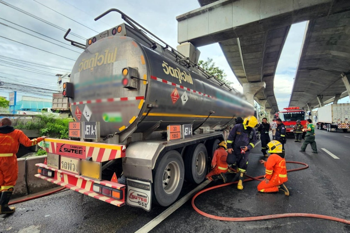 วันที่ 26 มิ.ย.66 เกิดเหตุรถบรรทุกน้ำมันเครื่องบิน 4 หมื่นลิตร ออกมาจากโรงกลั่นน้ำมันบางจาก จะเดินทางไปส่งที่ สนามบินอู่ตะเภา เกิดไฟลุกไหม้ที่ล้อหลังด้านซ้าย บนถนนบางนาตราดช่องทางด่วนฝั่งมุ่งหน้าชลบุรี กม.10 คนขับรถไหวพริบดี รีบจอดรถ ชิดซ้ายข้างทาง และรีบนำถังดับเพลิง ที่ติดรถ มาฉีดสกัดแต่เอาไม่อยู่ จึงรีบโทรสายด่วนเเจ้งเหตุฉุกเฉิน