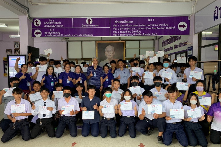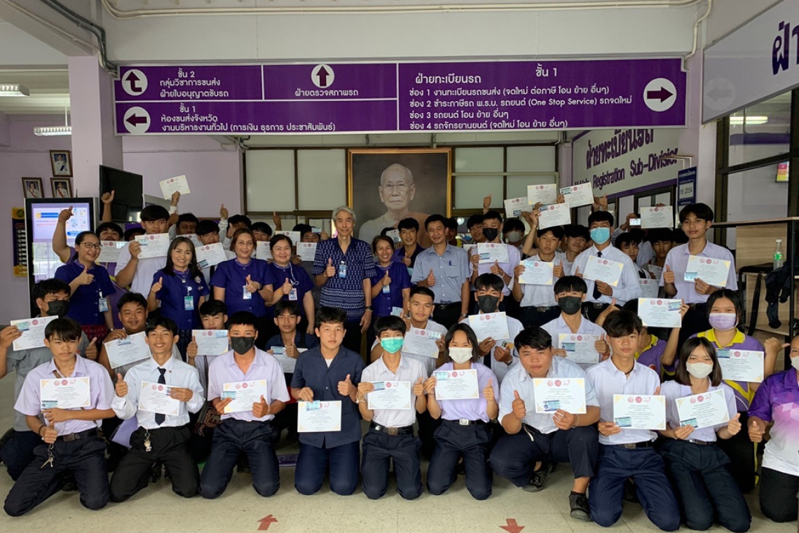 และในวันที่ 27 มิ.ย.66 นำนักเรียนที่ผ่านการอบรมและทดสอบภาคปฏิบัติการขับรถ เข้ารับการทดสอบสมรรถภาพร่างกายและทดสอบภาคทฤษฎีด้วยระบบ E-exam ที่สำนักงานขนส่งจังหวัดเลย เพื่อขอรับใบอนุญาตขับรถจักรยานยนต์ จำนวน 50 คน