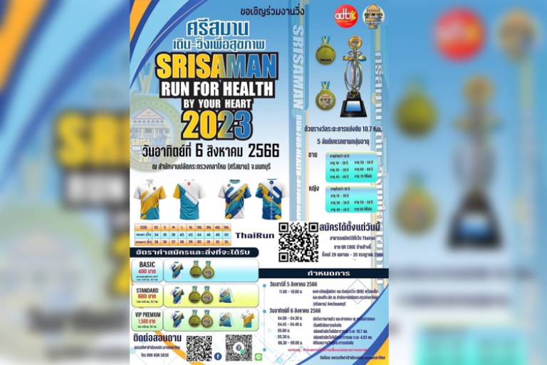 ชมรมกีฬาสำนักงบประมาณกลาโหม ขอเชิญร่วมงาน ศรีสมานเดิน - วิ่ง เพื่อสุขภาพ 2566 “SRISAMAN RUN FOR HEALTH BY YOUR HEART 2023” ในวันที่ 6 สิงหาคม 2566 ณ สำนักงานปลัดกระทรวงกลาโหม (ศรีสมาน) จ.นนทบุรี โดยรายได้ส่วนหนึ่งจากการจัดการแข่งขันนำมาจัดซื้อเครื่องมือแพทย์สนับสนุนให้กับ สำนักงานแพทย์ สำนักงานสนับสนุน สำนักงานปลัดกระทรวงกลาโหม และใช้ในกิจกรรมสาธารณกุศลต่าง ๆ