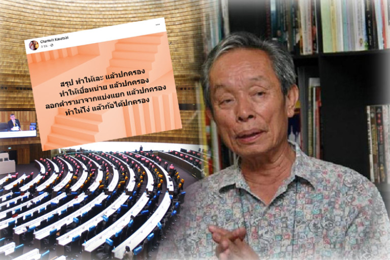 ล่าสุด  ศ.พิเศษ ดร.ชาญวิทย์ เกษตรศิริ อดีตอธิการบดีมหาวิทยาลัยธรรม โพสต์ข้อความผ่านเฟซบุ๊ก Charnvit Kasetsiri ระบุว่า.. สรุป ทำให้เละ แล้วปกครอง ทำให้เบื่อหน่าย แล้วปกครอง ลอกตำรามาจากแบ่งแยก แล้วปกครอง ทำให้โง่ แล้วก้อได้ปกครอง