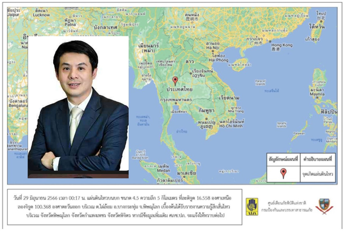 จากเหตุการณ์แผ่นดินไหวขนาด 4.5 ที่ระดับความลึก 5 กิโลเมตร มีจุดศูนย์กลางอยู่ที่ บริเวณตำบลไผ่ล้อม อำเภอบางกระทุ่ม จังหวัดพิษณุโลก ส่งผลให้ประชาชนรับรู้ถึงแรงสั่นสะเทือนในจังหวัด พิษณุโลก จังหวัดพิจิตร และจังหวัดกำแพงเพชร ศ.ดร.อมร พิมานมาศ คณะวิศวกรรมศาสตร์ มหาวิทยาลัยเกษตรศาสตร์ และนายกสมาคมวิศวกรโครงสร้างแห่งประเทศไทย กล่าวว่าแผ่นดินไหวที่เกิดขึ้นเป็นแผ่นดินไหวที่มีขนาดปานกลาง แต่เนื่องจากเป็นแผ่นดินไหวระดับตื้น จึงทำให้ประชาชนรับรู้ถึงการสั่นสะเทือนได้