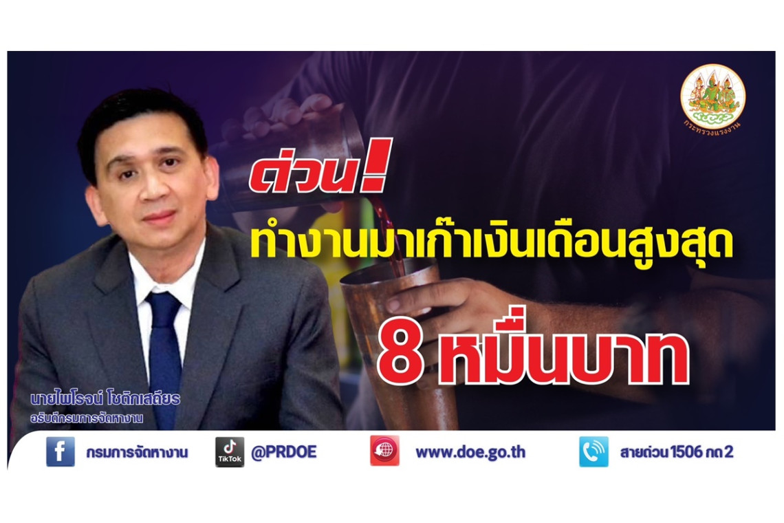 นายไพโรจน์ โชติกเสถียร อธิบดีกรมการจัดหางาน เปิดเผยว่า กรมการจัดหางาน เปิดรับสมัครคนไทยไปทำงานในเขตบริหารพิเศษมาเก๊า จำนวน 8 ตำแหน่ง รวม 41 อัตรา ได้แก่ พนักงานฝ่ายบริการลูกค้า จำนวน 5 อัตรา พนักงานต้อนรับลูกค้าวีไอพี จำนวน 5 อัตรา กัปตัน จำนวน 5 อัตรา พนักงานฝ่ายต้อนรับวีไอพี จำนวน 5 อัตรา พนักงานนวดสปา จำนวน 6 อัตรา พนักงานนวด-ฝ่าเท้า จำนวน 5 อัตรา พนักงานเสิร์ฟ จำนวน 5 อัตรา และบาร์เทนเดอร์/บาร์แอทเทนแดน จำนวน 5 อัตรา กับนายจ้าง บริษัท Galaxy Entertainment Group ซึ่งประกอบกิจการโรงแรม คาสิโน และร้านอาหาร เงินเดือนอยู่ระหว่าง 49,795 - 86,600 บาท โดยนายจ้างจะจ่ายค่าโดยสารเครื่องบินไป - กลับ เมื่อทำงานสิ้นสุดสัญญาจ้าง ช่วยจ่ายค่าที่พักเดือนละ 500 เหรียญมาเก๊า จัดอาหารในช่วงเวลาทำงาน ทำประกันสุขภาพ และสวัสดิการอื่นๆ ตามกฎหมายแรงงานมาเก๊ากำหนด ผู้ที่สนใจสามารถศึกษารายละเอียดการสมัครสอบ และยื่นใบสมัครทางอีเมล ได้ตั้งแต่บัดนี้จนถึงวันที่ 7 กรกฎาคม 2566 ไม่เว้นวันหยุดราชการ โดยสามารถดาวน์โหลดแบบฟอร์มใบสมัคร และศึกษารายละเอียดได้ที่ เว็บไซต์ www.doe.go.th/overseas หัวข้อ “ข่าวประกาศรับสมัคร"