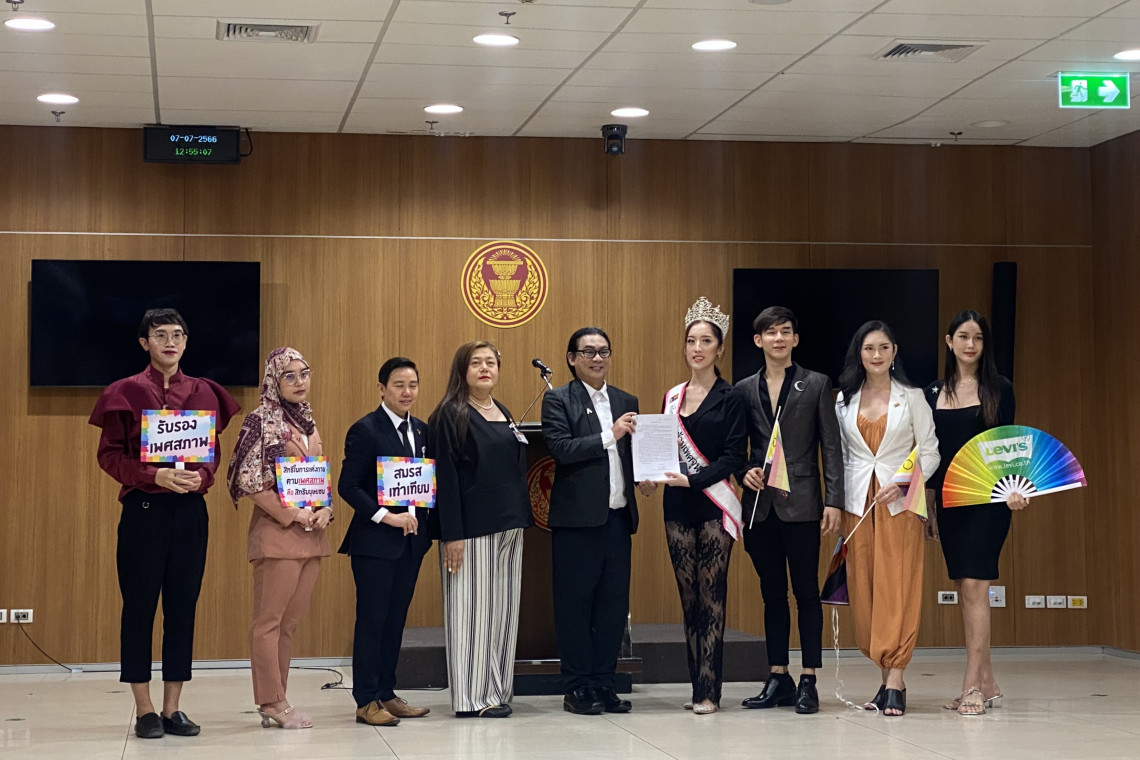 เมื่อเวลา 13.00 น. วันที่ 7 ก.ค. 66 ที่รัฐสภา นายธัญวัจน์ กมลวงศ์วัฒน์ ส.ส.บัญชีรายชื่อ พรรคก้าวไกล และนายปารมี ไวจงเจริญ ส.ส.บัญชีรายชื่อ พรรคก้าวไกล รับหนังสือจากนายจิรภัทร ตรงจิตต์รักษา หรือ ชมพิ้งค์ อดีตนิสิตข้ามเพศ จุฬาลงกรณ์มหาวิทยาลัย และนักขับเคลื่อนผู้มีความหลากหลายทางเพศ เพื่อขอให้พรรคก้าวไกลช่วยประสานงาน ให้หน่วยงานที่เกี่ยวข้อง เร่งรณรงค์ประชาสัมพันธ์ เพื่อให้นักศึกษาราชภัฏ 38 แห่งทั่วประเทศไทย และนักศึกษาสวนดุสิต แสดงความประสงค์ขอแต่งกายตามเพศสภาพ