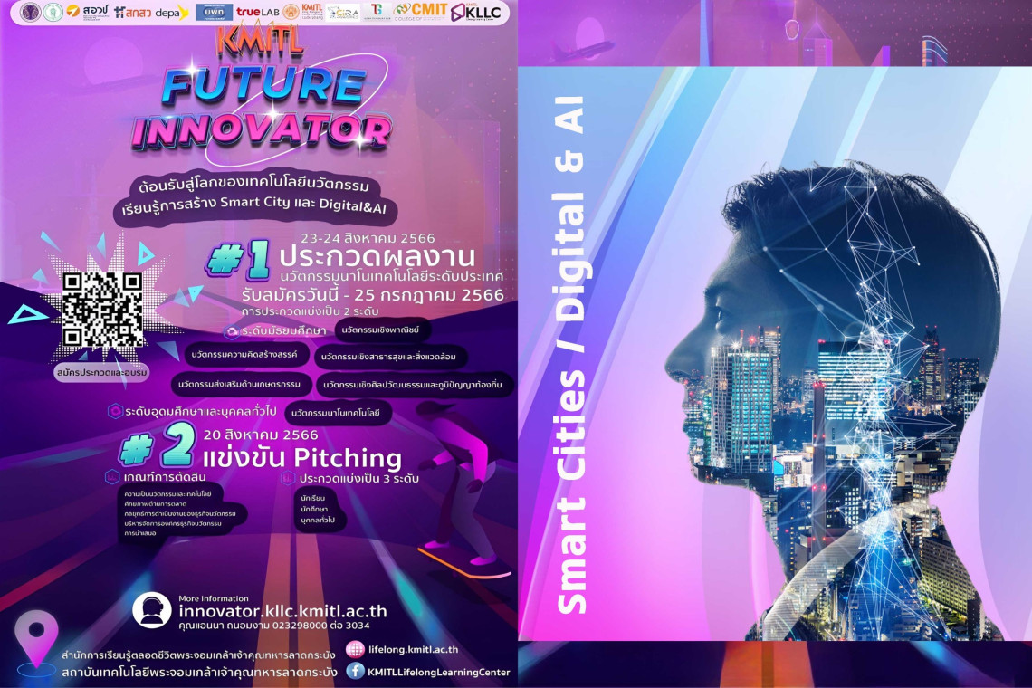 สถาบันเทคโนโลยีพระจอมเกล้าเจ้าคุณทหารลาดกระบัง (สจล.) โดย สำนักการเรียนรู้ตลอดชีวิตพระจอมเกล้าเจ้าคุณทหารลาดกระบัง (KLLC) ร่วมกับวิทยาลัยเทคโนโลยีและนวัตกรรมวัสดุ สจล. เชิญนักเรียน นักศึกษา และบุคคลทั่วไป เปิด 2 เวทีประกวด คือ งานประกวดผลงานนวัตกรรมนาโนเทคโนโลยีระดับประเทศ ชิงถ้วยรางวัลยิ่งใหญ่ และงานประกวดไอเดียแนวคิดนวัตกรรม (Pitching) รางวัลมูลค่ารวมกว่า 185,000 บาท ในงาน “KMITL Future Innovator 2023” ภายใต้ธีมการแข่งขัน Smart Cities, Digital & AI ณ สำนักการเรียนรู้ตลอดชีวิตพระจอมเกล้าเจ้าคุณทหารลาดกระบัง (KLLC) อาคารเฉลิมพระเกียรติ ชั้น 1 โซน A (ติดหอประชุมใหญ่) ถนนฉลองกรุง เขตลาดกระบัง