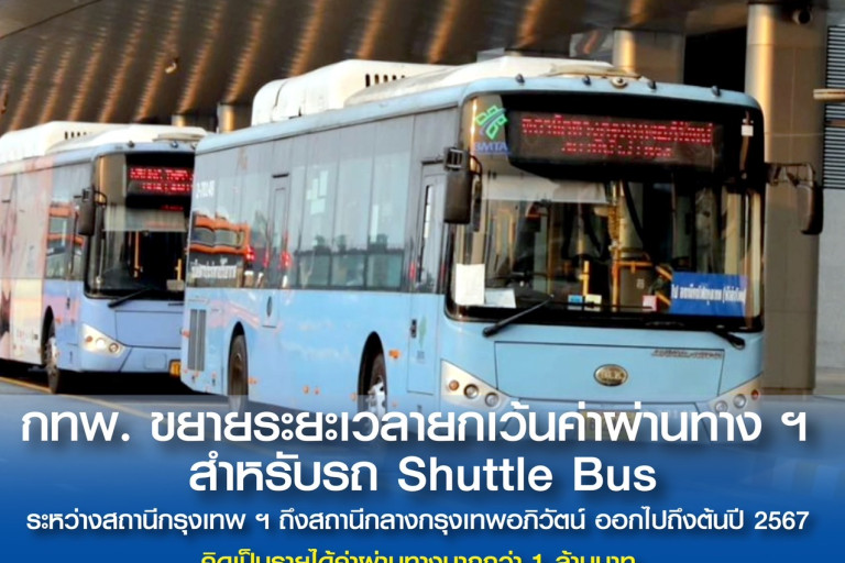 การทางพิเศษแห่งประเทศไทย (กทพ.) ขยายระยะเวลาการยกเว้นค่าผ่านทางพิเศษสำหรับรถรับ - ส่ง (Shuttle Bus) ระหว่างสถานีกรุงเทพ (หัวลำโพง) - สถานีกลางกรุงเทพอภิวัฒน์ ที่ด่านเก็บค่าผ่านทางพิเศษหัวลำโพง และด่านเก็บค่าผ่านทางพิเศษย่านพหลโยธิน จำนวนเที่ยววิ่ง 88 เที่ยวต่อวัน ออกไปอีก 6 เดือน ตั้งแต่วันที่ 19 กรกฎาคม 2566 จนถึงวันที่ 18 มกราคม 2567 คิดเป็นค่าผ่านทางพิเศษ 1,188,000 บาท เพื่อเป็นการบริการ และลดค่าใช้จ่ายของประชาชน ซึ่งก่อนหน้านี้ ได้ยกเว้นค่าผ่านทางจำนวน 88 เที่ยวต่อวัน มาตั้งแต่วันที่ 19 มกราคม 2566 รวมเป็นค่าผ่านทางพิเศษ 2,376,000 บา