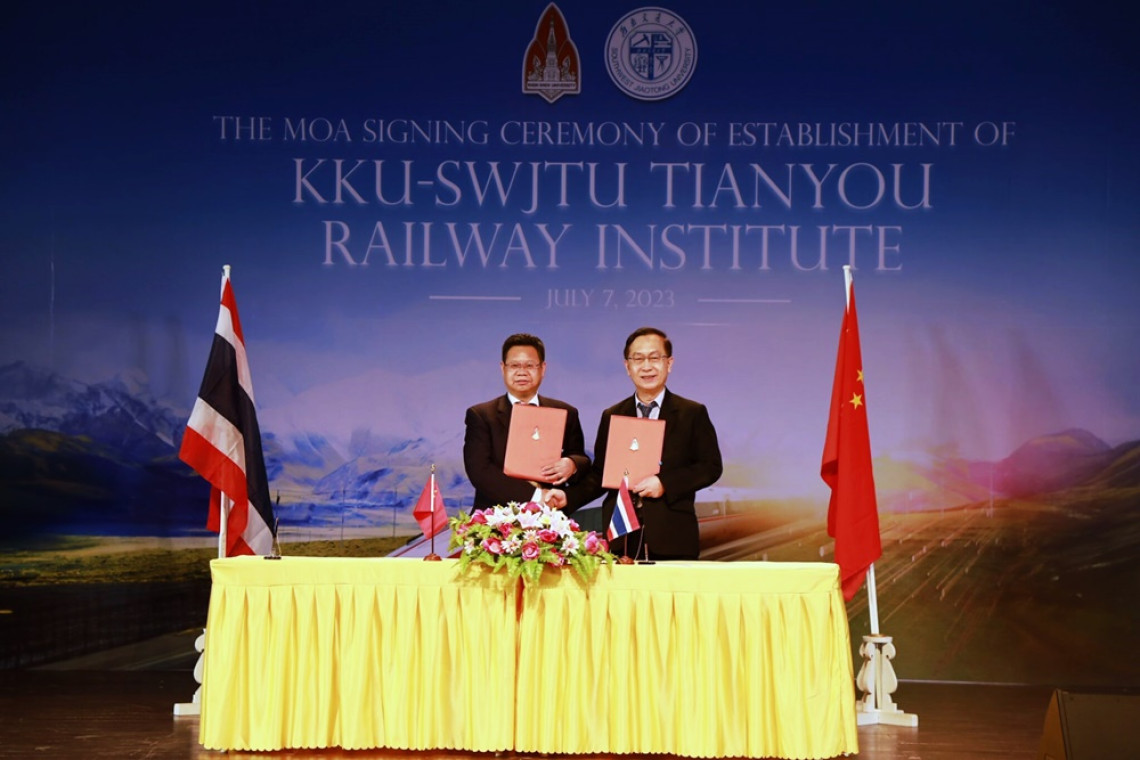 มข.ลงนามบันทึกข้อตกลงการจัดตั้งสถาบัน พร้อมเปิดสถาบัน The KKU-SWJTU Tianyou Railway Institute ร่วมกับ SWJTU สาธารณรัฐประชาชนจีน เดินหน้าหลักสูตร High Speed Train Engineering ผลิตบัณฑิตคุณภาพเสริมกำลังตลาดแรงงานด้านวิศวกรรมรถไฟความเร็วสูง