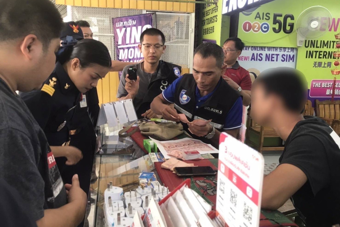 มอบให้สายลับเข้าไปทำการขอซื้อ ซิมการ์ดจากร้านโดยมีเจ้าหน้าที่ได้ซุ่มดูอยู่บริเวณหน้าร้าน ขณะนั้นมีนายภูสิน เป็นผู้จำหน่ายซิมการ์ดให้แก่สายลับ เมื่อสายลับได้จ่ายเงินและรับมอบซิมการ์ดมาแล้วได้ส่งสัญญาณให้เจ้าหน้าที่ชุดจับกุมซึ่งซุ่มดู จากนั้นเจ้าหน้าที่ชุดจับกุมได้แสดงตัวว่าเป็นเจ้าหน้าที่ตำรวจและเจ้าหน้าที่ กสทช. เพื่อขอทำการตรวจค้นพบ ซิมการ์ดโทรศัพท์ที่ได้จากการล่อซื้ออยู่กับสายลับ และ ซิมการ์ดโทรศัพท์ จำนวน 17 ซิม ตรวจยึดในตู้กระจกจุดที่จำหน่ายบริเวณหน้าร้าน ซึ่งผู้ที่เดินผ่านไปมาสามารถมองเห็นได้ชัดเจนและเป็นสินค้าสำหรับจำหน่าย เจ้าหน้าที่ชุดจับกุมจึงได้ทำการตรวจสอบโดยนำซิมการ์ดที่ได้จากการล่อซื้อมาใช้งานต่อหน้า นายภูสิน พบว่าสามารถโทรออกได้โดยไม่ต้องลงทะเบียน จากนั้นได้มี น.ส.ธวัลรัตน์ ได้แสดงตัวเป็นเจ้าของร้านเมื่อตรวจสอบแล้วพบว่าซิมการ์ดทั้งหมดได้ลงทะเบียนไว้แล้วโดยใช้ชื่อของ น.ส.ธวัลรัตน์ ซึ่งเป็นเจ้าของร้าน และ น.ส.ธวัลรัตน์ มีเลขประจำตัวประชาชน ซึ่งลงท้าย 4 ตัว คือ 3219 ซึ่งตรงกับผู้ที่ลงทะเบียนซิมการ์ดก่อนหน้านี้ที่เคยซื้อไปแล้วและตรงกับของกลางซิมการ์ดโทรศัพท์ที่ตรวจยึดได้จากการล่อซื้อ อีกทั้งยังตรวจพบ ซิมการ์ดโทรศัพท์อีกกว่า จำนวน 297 ชิ้น จึงได้จับกุมตัว น.ส.ธวัลรัตน์ อายุ 48 ปี ผู้ต้องหาที่ 1 ชาวอำเภอเมืองยะลา จังหวัดยะลา และ นายภูสิน อายุ 17 ปี ผู้ต้องหาที่ 2 ชาวอำเภอเมืองสงขลา จังหวัดสงขลา โดยผู้ต้องหาที่ 1 กระทำความผิดฐาน “ยินยอมให้บุคคลอื่นใช้หรือยืมใช้เลขหมายโทรศัพท์สำหรับบริการโทรศัพท์เคลื่อนที่ของตน ทั้งนี้โดยประการที่รู้หรือควรรู้ว่าจะนำไปใช้ในการกระทำความผิดเกี่ยวกับอาชญากรรมทางเทคโนโลยีหรือความผิดอาญาอื่นใด” และ ผู้ต้องหาที่ 2 กระทำความผิดฐาน “ร่วมกันเป็นธุระจัดหา โฆษณา หรือไขข่าวโดยประการใดๆ เพื่อให้มีการซื้อหรือขายเลขหมายโทรศัพท์สำหรับบริการโทรศัพท์เคลื่อนที่ ซึ่งลงทะเบียนผู้ใช้บริการในนามของบุคคลหนึ่งบุคคลใดแล้ว แต่ไม่สามารถระบุตัวผู้ใช้บริการได้” โดยจับกุมตัวได้ที่ร้านค้าในตัวเมือง อ.สะเดา จ.สงขลา
