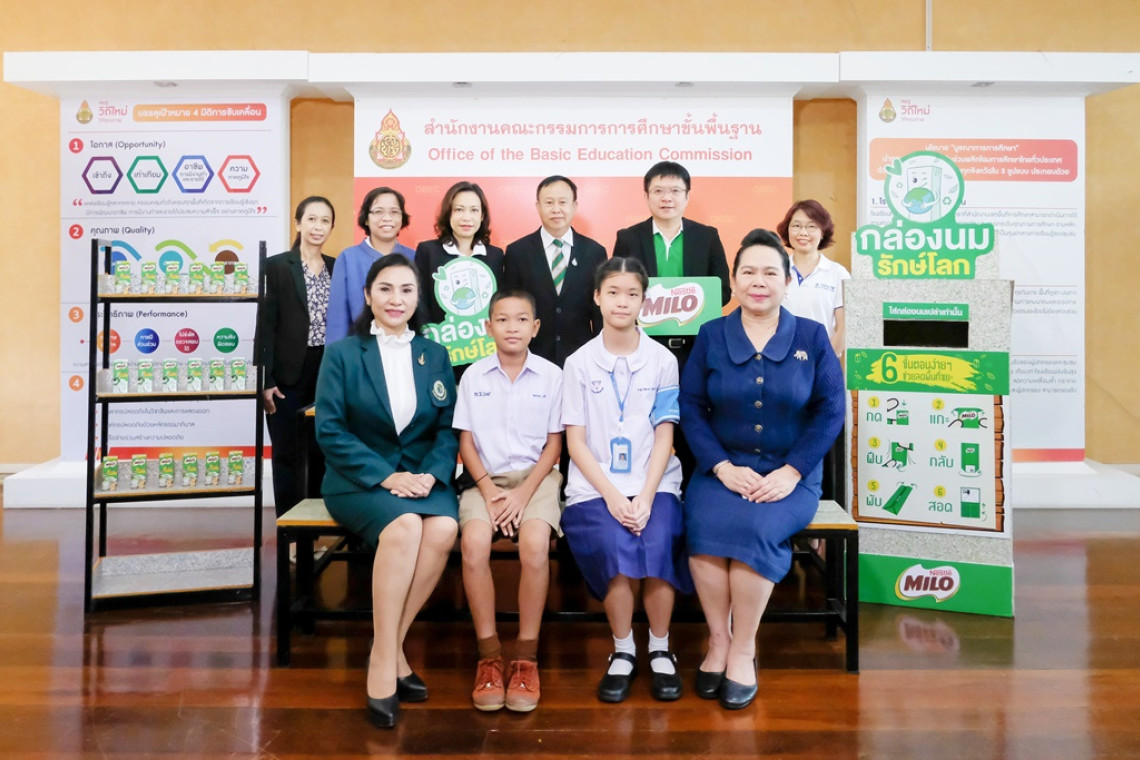 ไมโล เครื่องดื่มช็อกโกแลตมอลต์ชั้นนำระดับโลก นำโดยนายไชยงค์ สกุลบริรักษ์ ผู้อำนวยการบริหารธุรกิจผลิตภัณฑ์นมและโภชนาการ และนางสาวสลิลลา สีหพันธุ์ ผู้อำนวยการบริหารฝ่ายองค์กรสัมพันธ์ บริษัท เนสท์เล่ (ไทย) จำกัด มอบชุดโต๊ะและชั้นวางหนังสือรีไซเคิลจากกล่องเครื่องดื่มให้กับโรงเรียน 15 แห่งในสังกัด สพฐ. และ สำนักการศึกษากรุงเทพมหานคร ในโครงการกล่องนมรักษ์โลก ภายใต้ความมุ่งมั่นของไมโลในการปลูกฝังจิตสำนึกและพฤติกรรมด้านความยั่งยืนให้แก่เด็กนักเรียนในโรงเรียน ส่งเสริมการคัดแยก และเปลี่ยนขยะให้เกิดประโยชน์ผ่านการจัดการที่เหมาะสม