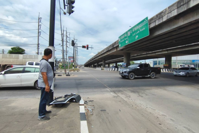 ด้านพ.ต.ท.สามารถ เปาจีน รองผกก.จราจรสภ.เมืองปทุมธานี ได้ให้ข้อมูลว่าจากเหตุการณ์โคมไฟเขียว-แดงร่วงมาบนถนนทำให้คนขับรถที่จอดติดไฟแดงอยู่ตกใจนึกว่ามีรถมาชนนั้นขณะนี้ตนได้ประสานเจ้าหน้าที่หน่วยงานแขวงการทางปทุมธานีให้รีบดำเนินการแก้ไขแล้วแต่ก็โชคดีที่โคมไฟไม่ได้ร่วงมาถูกของประชาชนหรือประชาชนที่จอดรถติดไฟแดงอยู่