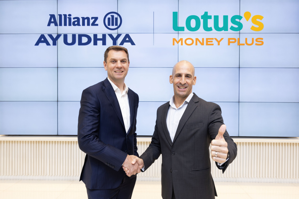 โลตัส มันนี่ พลัส  โดย มร.นิค สมาร์ท กรรมการผู้จัดการใหญ่ และ บมจ. อลิอันซ์ อยุธยา ประกันภัย โดย มร.ลาร์ส ไฮบุทสกี้ กรรมการผู้จัดการใหญ่ ประกาศความร่วมมือในธุรกิจประกันภัย เพิ่มทางเลือกให้กับลูกค้าผู้ต้องการซื้อประกันภัยรถยนต์ผ่านเคาน์เตอร์บริการของโลตัส มันนี่ พลัส กว่า 200 สาขา ณ ห้างโลตัสทั่วประเทศ