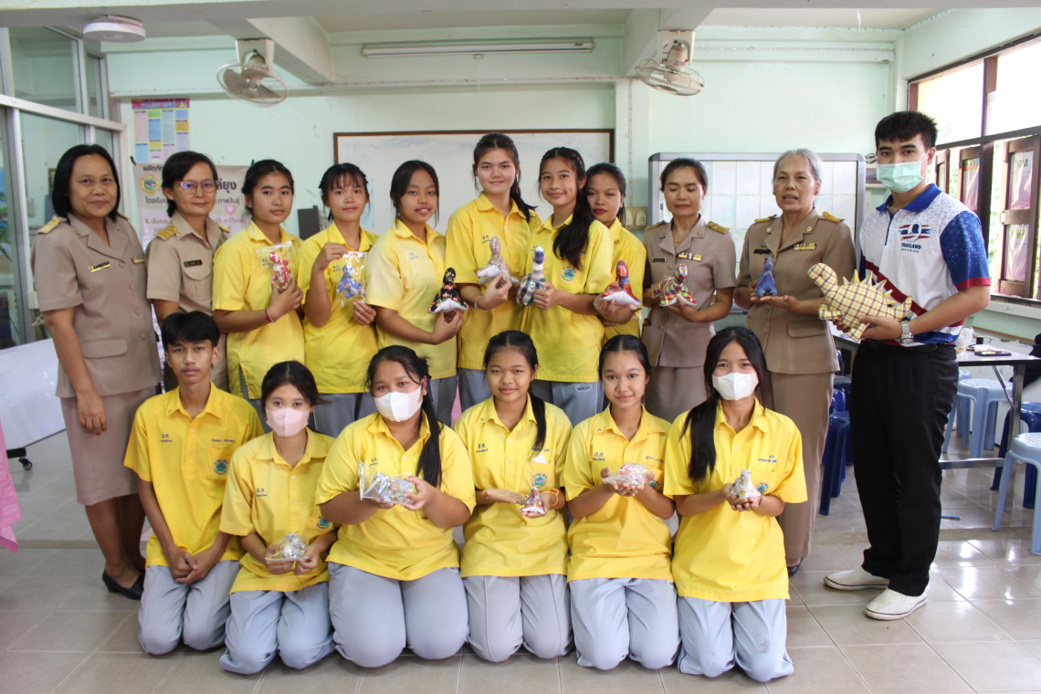 สำหรับขั้นตอนในการทำพวงกุญแจไดโนเสาร์สมุนไพร เริ่มต้นจากการนำเศษผ้ามาตัดเป็นรูปไดโนเสาร์ โดยใช้ 2 ชิ้น ประกบกัน จากนั้นเย็บตะเข็บเหลือช่องไว้ยัดไส้และสมุนไพร แล้วเย็บปิด จากนั้นนำเอาพวงกุญแจมาเย็บติดกับตัวไดโนเสาร์ โดยสมุนไพรจะอยู่ได้นานประมาณ 1 สัปดาห์ ซึ่งสามารถนำสมุนไพรที่ยัดไว้เปลี่ยนใหม่ได้เรื่อย ๆ โดยสมุนไพรที่ใช้มีทั้งตะไคร้หอม ใบมะกรูด ใบเตย ซึ่งเป็นสมุนไพรหาได้ในบ้านหรือชุมชน ซึ่งมนอนาคตจะต่อยอดให้เป็นผลิตภัณฑ์ ให้ดียิ่งขึ้นโดยเฉพาะการเย็บด้วยมือของนักเรียน ที่มีความตั้งใจประดิษฐ์อย่างมาก และมีความหวังที่จะเป็นผลิตภัณฑ์สร้างรายได้ให้กับเด็ก ๆ ต่อไป