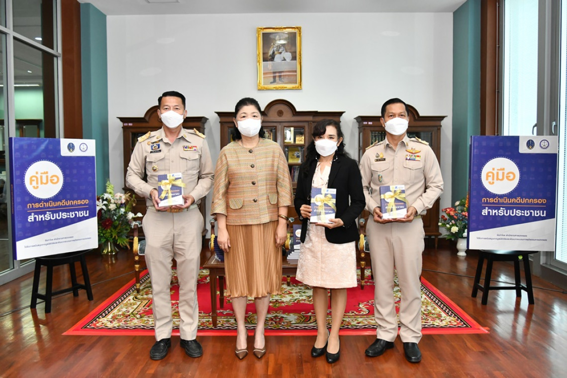นางสมฤดี ธัญญสิริ เลขาธิการสำนักงานศาลปกครอง (ที่ 2 จากซ้าย) มอบหนังสือคู่มือการดำเนินคดีปกครองสไหรับประชาชน ให้กับ 3 หน่วยงานความร่วมมือตามบันทึกข้อตกลงทางวิชาการ (MOU) กับสำนักงานศาลปกครอง โดยมี นายพัฒนะ พัฒนทวีดล รองเลขาธิการคณะกรรมการการศึกษาขั้นพื้นฐาน (ที่ 1 จากขวา) นายวิษณุ วิทยวราวัฒน์ ผู้ตรวจราชการกรมส่งเสริมการปกครองท้องถิ่น (ที่ 1 จากซ้าย) และ นางทิพวรรณ วานิชกิตติกูล ผู้อำนวยการส่วนคดีปกครอง รักษาการในตำแหน่งผู้อำนวยการสำนักงานกฎหมายและคดี สำนักปลัดกรุงเทพมหานคร (ที่ 2 จากขวา) เป็นผู้แทนการรับมอบ ณ บริเวณหอสมุดกฎหมายมหาชน ชั้น 2 อาคารศาลปกครอง เมื่อเร็ว ๆ นี้