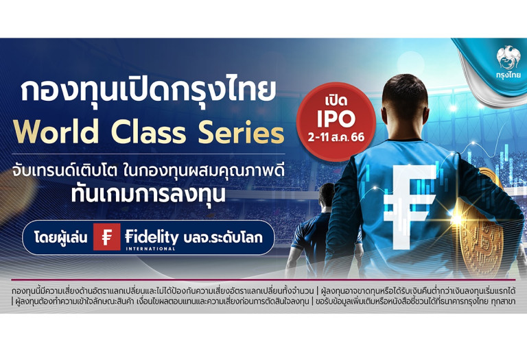 ธนาคารกรุงไทยจับมือ “ฟิเดลิตี้” ต่อยอดความร่วมมือ สร้างประสบการณ์ลงทุนเหนือระดับให้ลูกค้า เปิดกองทุนใหม่ “Krungthai World Class Series” รวม 3 กองทุน แยกตามระดับความเสี่ยงและผลตอบแทนที่คาดหวัง มุ่งจับเทรนด์การเติบโตในสินทรัพย์คุณภาพดีทั่วโลก โดยผู้เชี่ยวชาญการลงทุนระดับโลกจากฟิเดลิตี้ ลงทุนง่ายเริ่มต้น 1 บาทผ่าน Krungthai NEXT และสาขาทั่วประเทศ ดีเดย์ 2-11 ส.ค.66