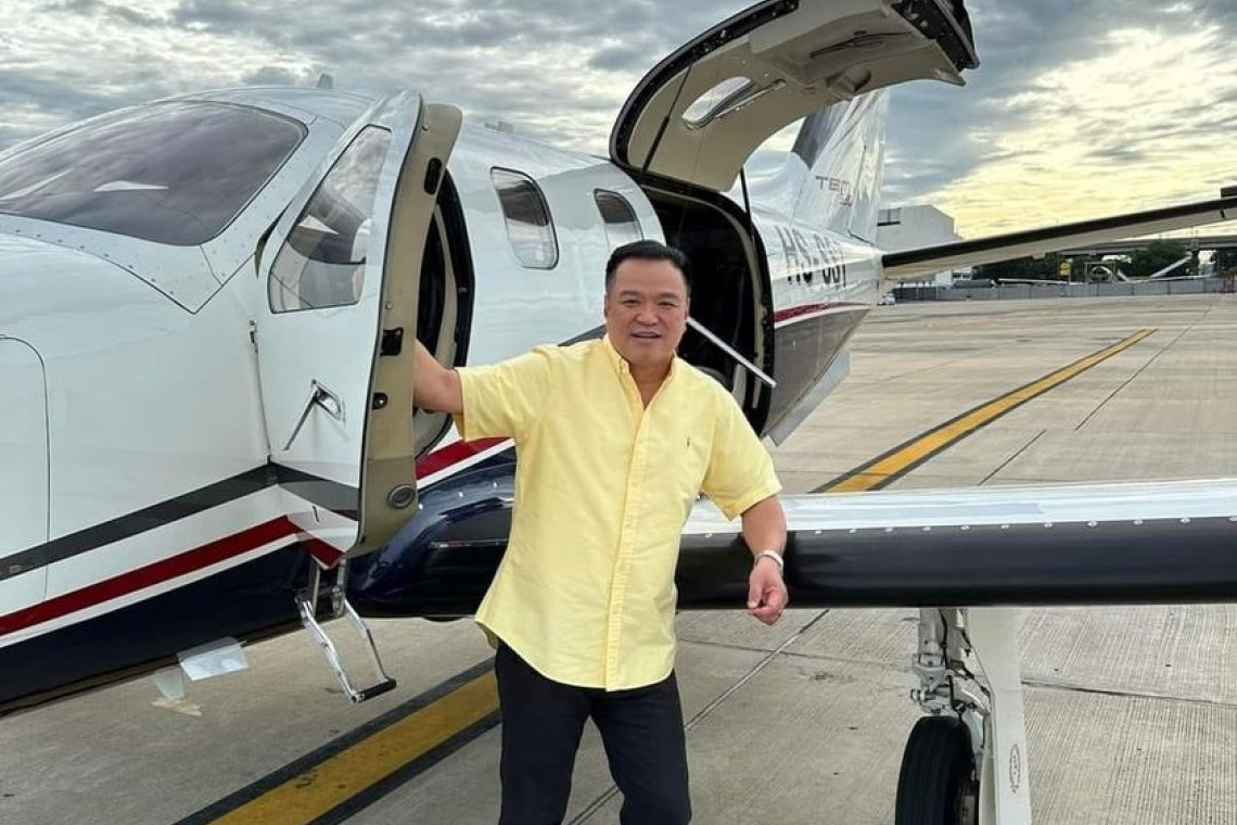 ที่เฟซบุ๊กคุณอนุทิน ปรากฏภาพท่าน ใน ใบหน้ายิ้มแย้ม ในชุดเสื้อเชิ๊ตสีเหลือง ด้านหลังเป็นเครื่องบินส่วนตัว พร้อมข้อความว่า