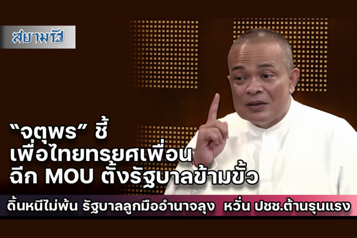 นาย จตุพร พรหมพันธ์ แกนนำคณะหลอมรวมประชาชน กล่าวในรายการ ประเทศไทยต้องมาก่อน เมื่อวันที่ 2 ส.ค.66 ตอน "สุด?" กล่าวว่า พรรคเพื่อไทยฉีก MOU 8 พรรคเป็นการทรยศเพื่อนเพื่อไปตั้งรัฐบาลข้ามขั้วเท่ากับตระบัดสัตย์ต่อประชาชน และยังส่อแววดิ้นหนีไม่พ้นดึงพรรคสองลุงเข้าร่วมรัฐบาล แล้วแปลงร่างยอมสยบเป็นพรรคลูกมือการสืบทอดอำนาจ